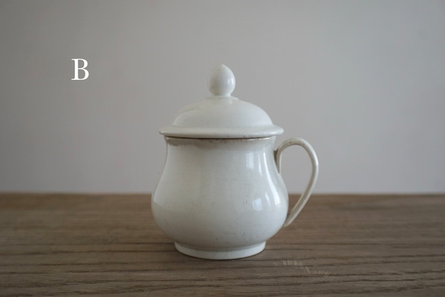 パリ近郊 Creil窯より、シャープでスッとした佇まいのクリームポットです。ファイアンスフィーヌのクリームポットで刻印までしっかりと入っているものはなかなか見かけず、手にできて嬉しかったです。また、今まで見てきた同じデザインの個体の中でも若干小さめの作りで、ディネットなんかと合わせても素敵だと思います。 年代: 19世紀前期 口径 5.5cm 蓋含む高さ 約8.6cm 配送サイズ 60サイズ 状態はお写真でご確認いただき、ご不明な点はお気軽にお問合せください。