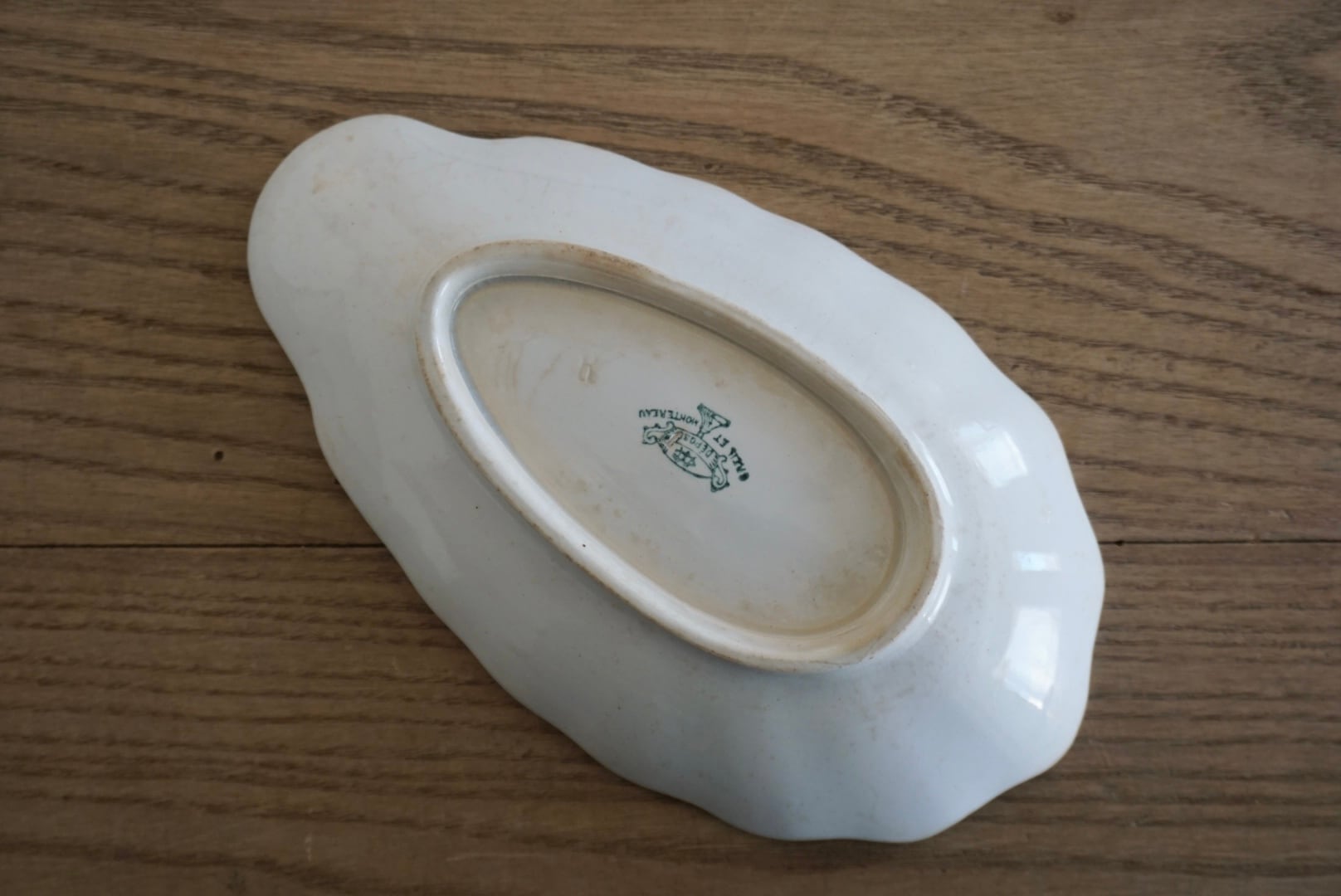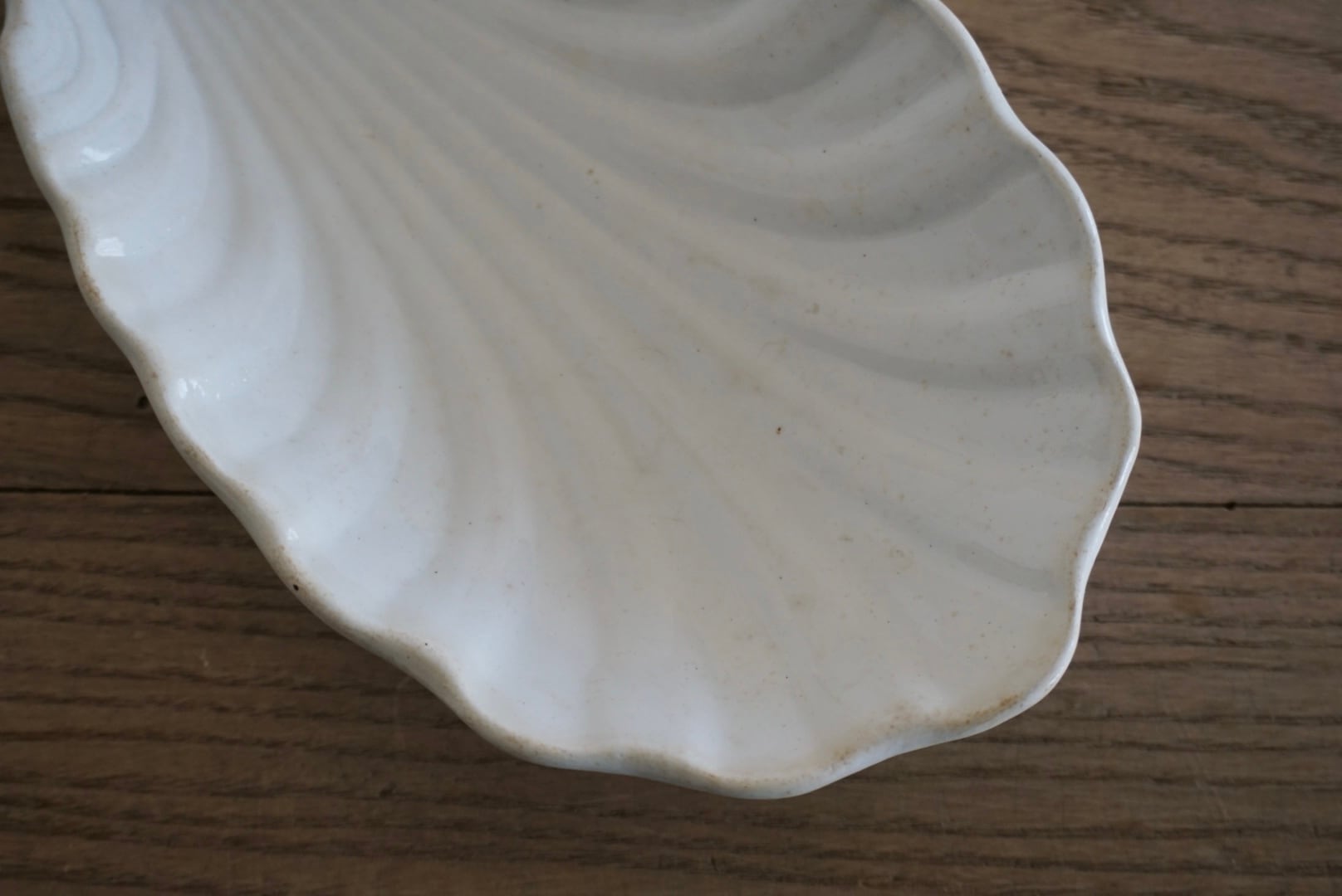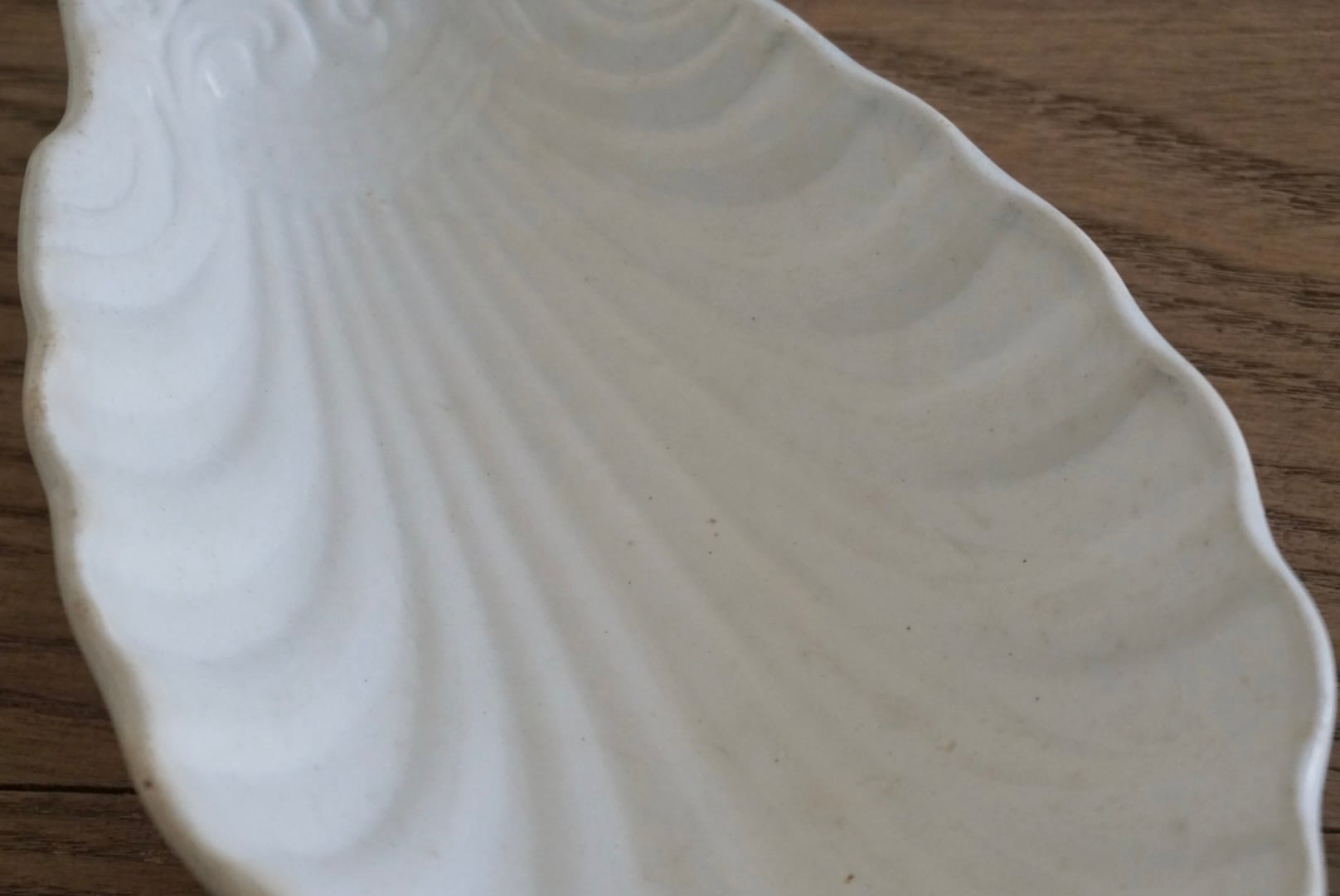 パリ近郊 Creil et Montereau窯より、優美な曲線のレリーフが美しいコキーユ(貝殻)モチーフのラヴィエです。程よく枯れてアンティークならではの表情で、アクセサリートレーなどのインテリアとしても楽しめます。