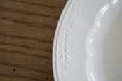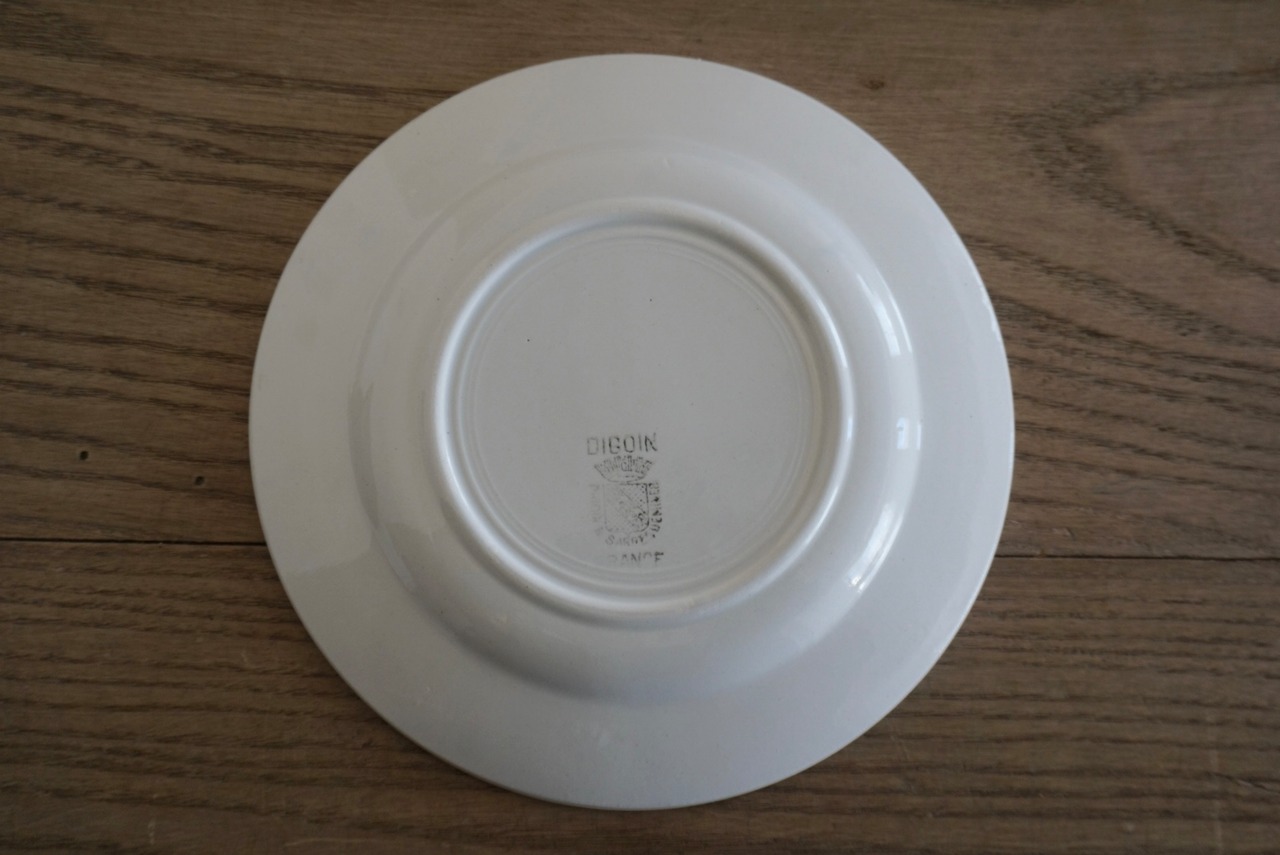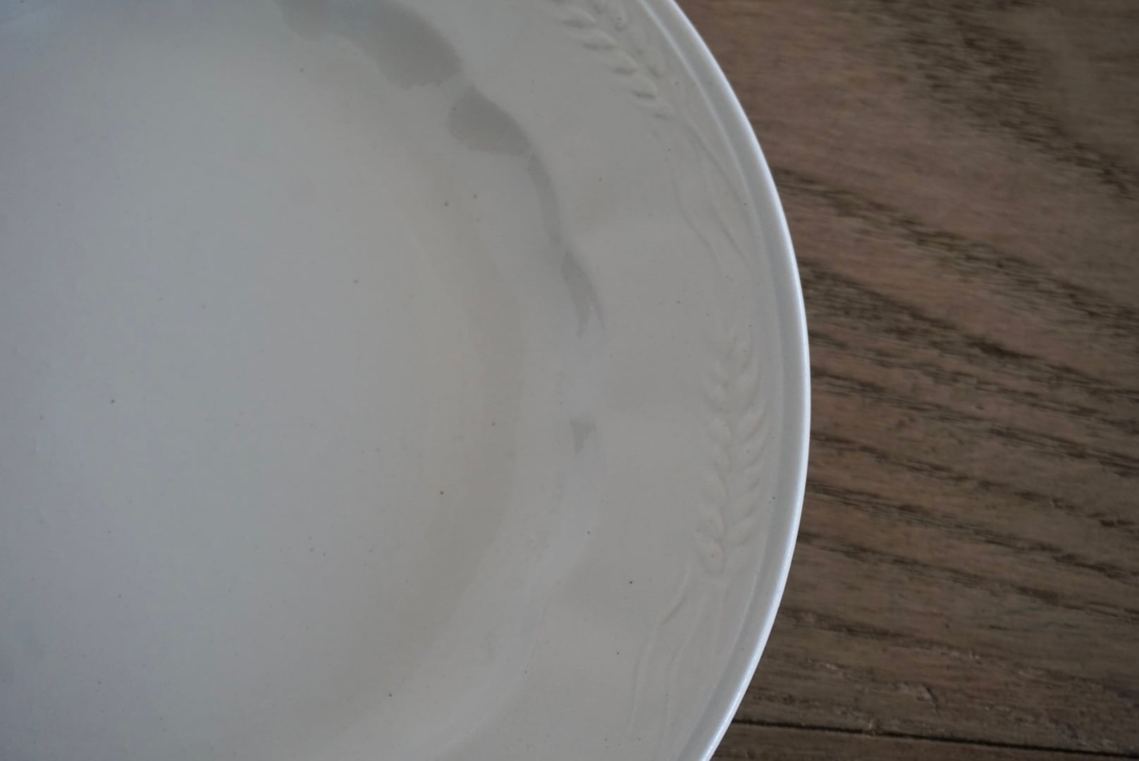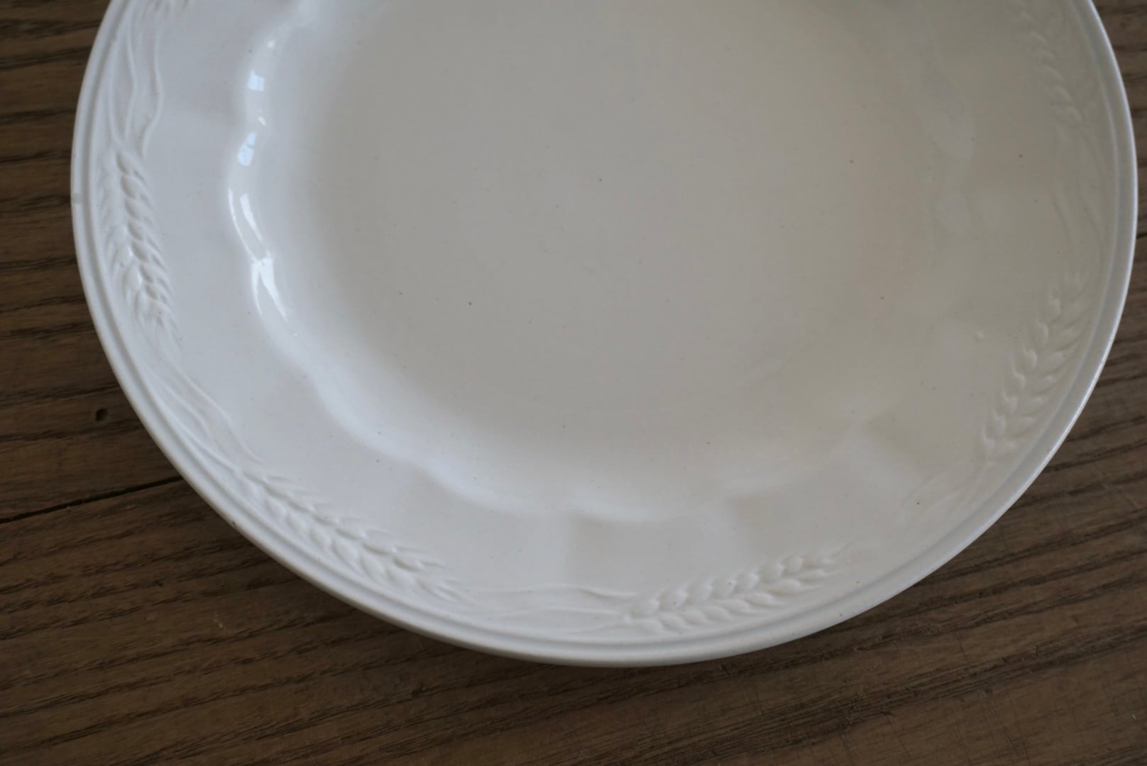 ロレーヌ地方 Digoin&Sarreguemines窯より、麦のレリーフが素朴な印象のデザート皿です。一見、特別なことはないシンプルなデザインに見えますが、見込みの縁が花リムになっているところが少し小さめのサイズ感も相まって可愛いポイントだと思います。