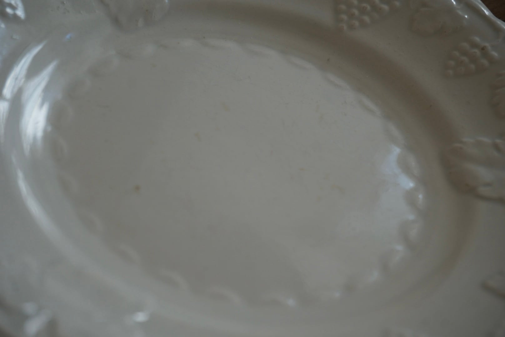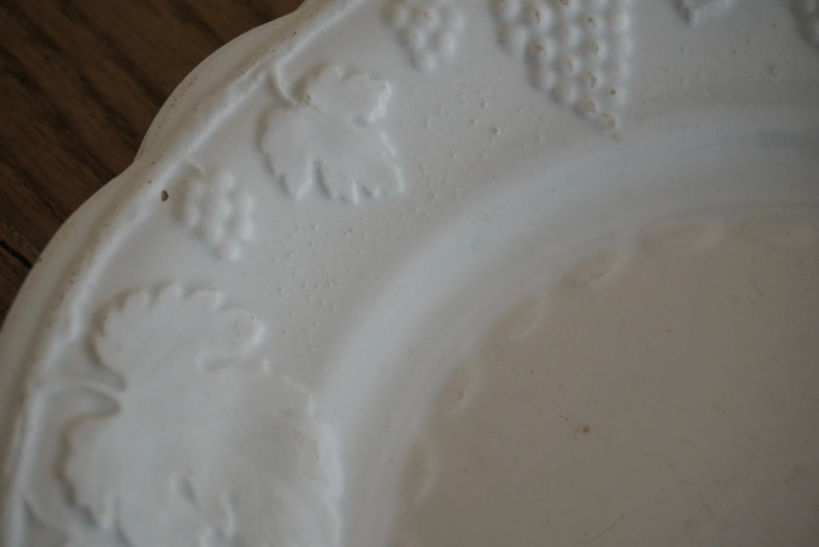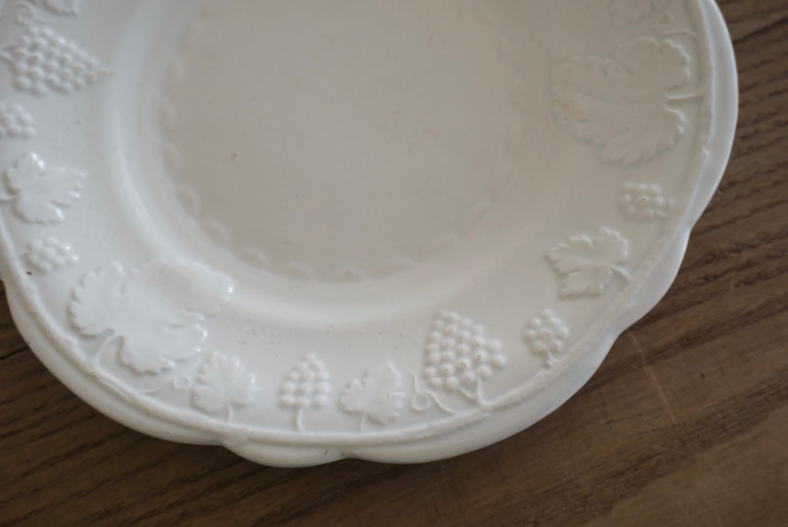 スイスとの国境に程近いSalins-les-Bains(サラン・レ・バン)という街で創業したSalins窯より、大ぶりの葡萄レリーフが可愛らしいデザートプレートです。古さを感じる質感と美しさ花リムが良いバランスの一枚です。