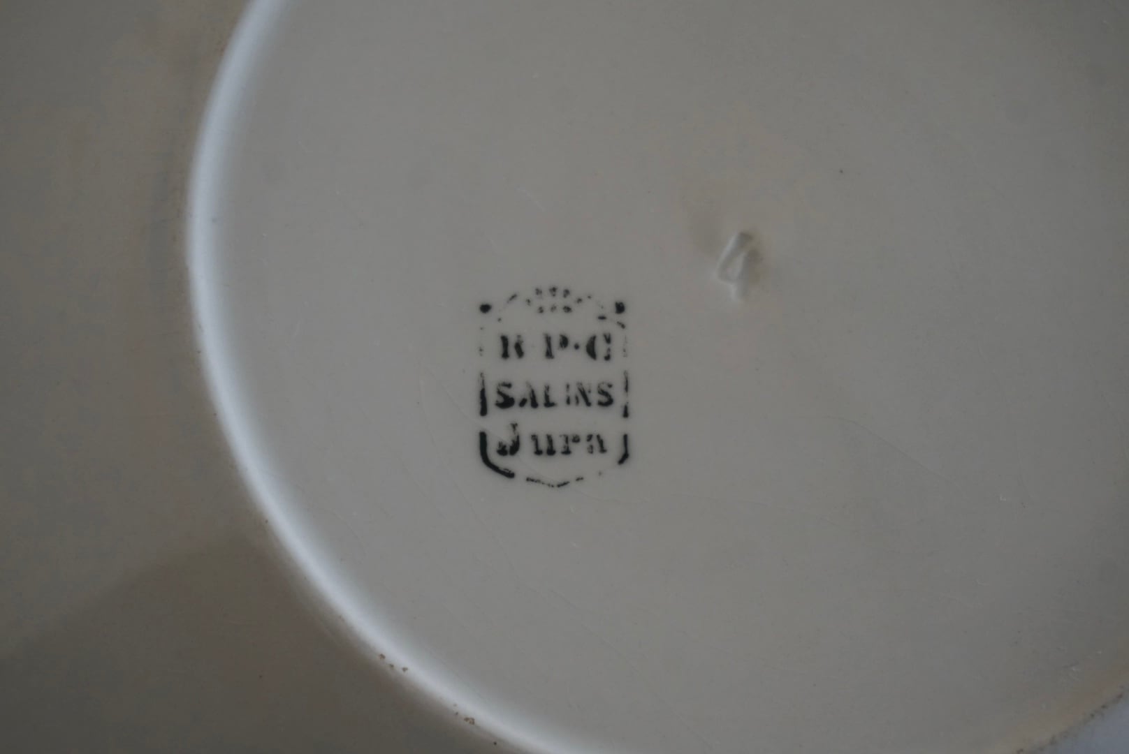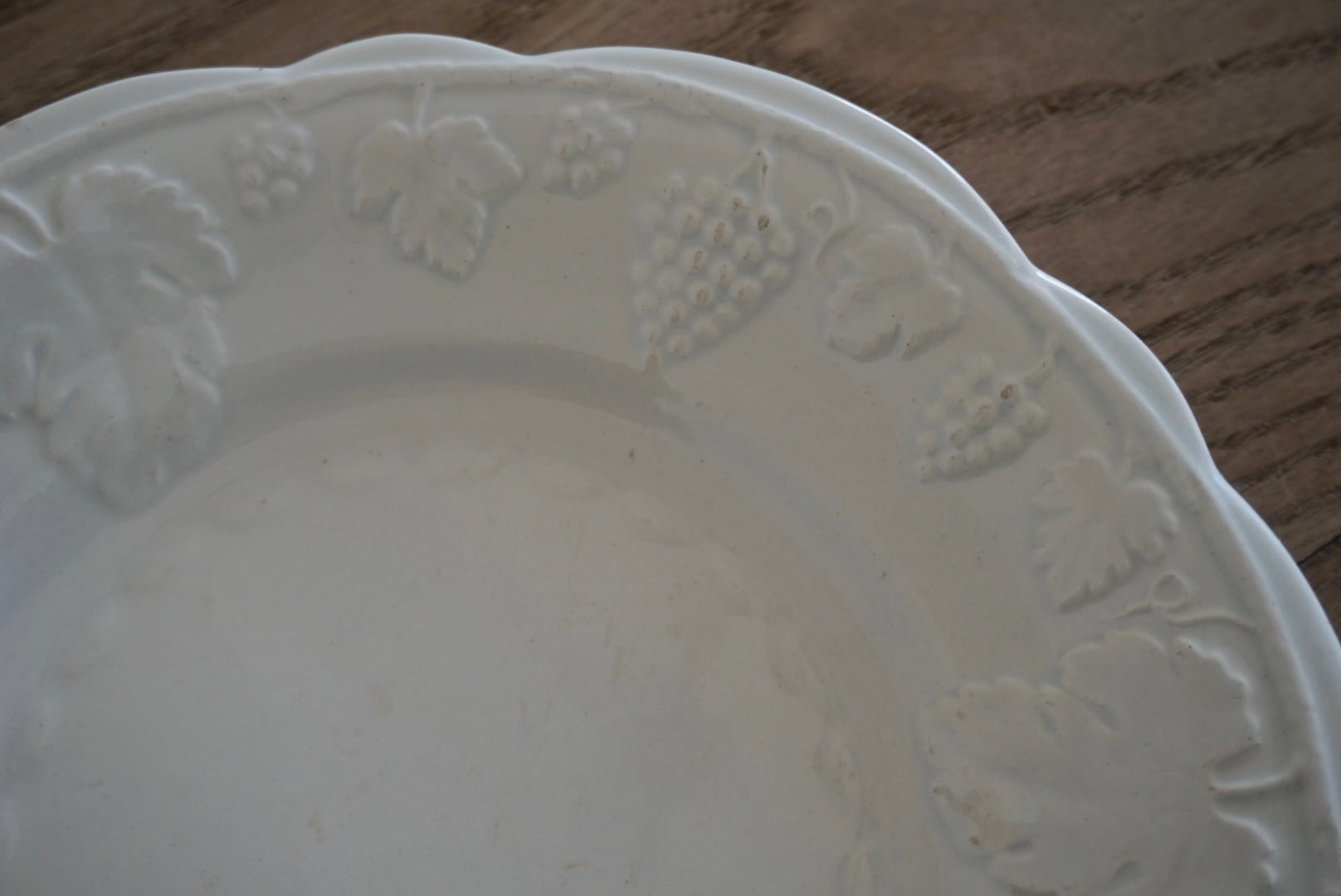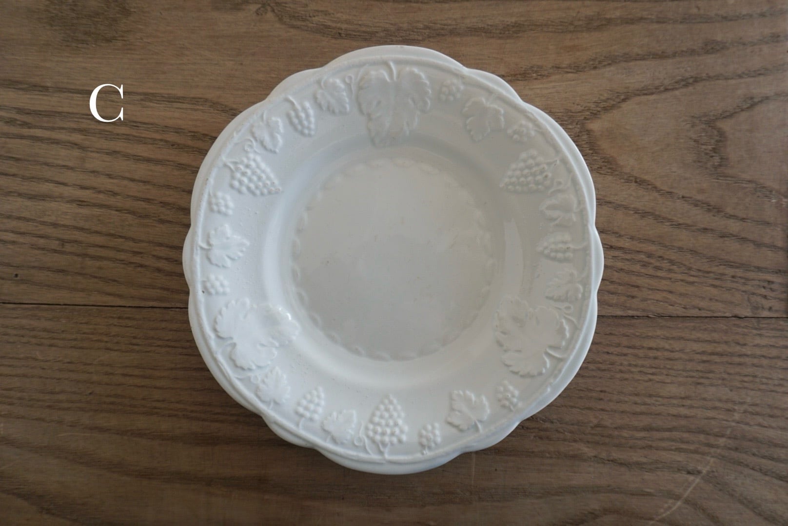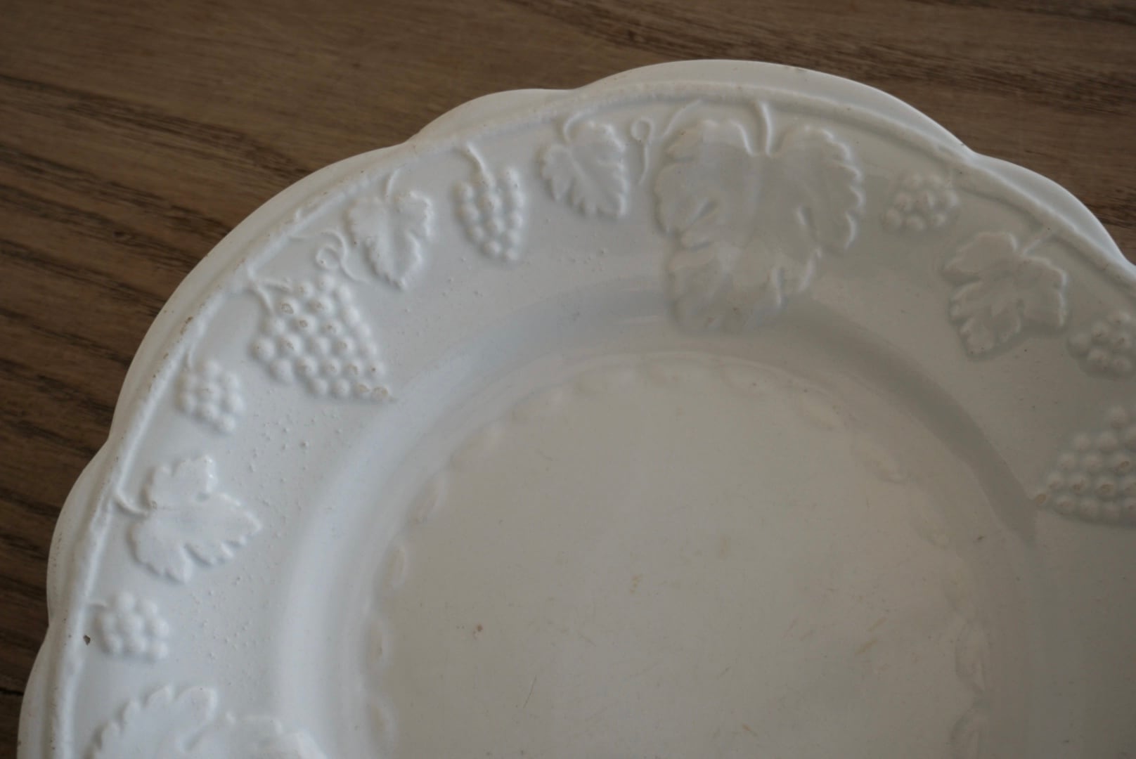 スイスとの国境に程近いSalins-les-Bains(サラン・レ・バン)という街で創業したSalins窯より、大ぶりの葡萄レリーフが可愛らしいデザートプレートです。古さを感じる質感と美しさ花リムが良いバランスの一枚です。