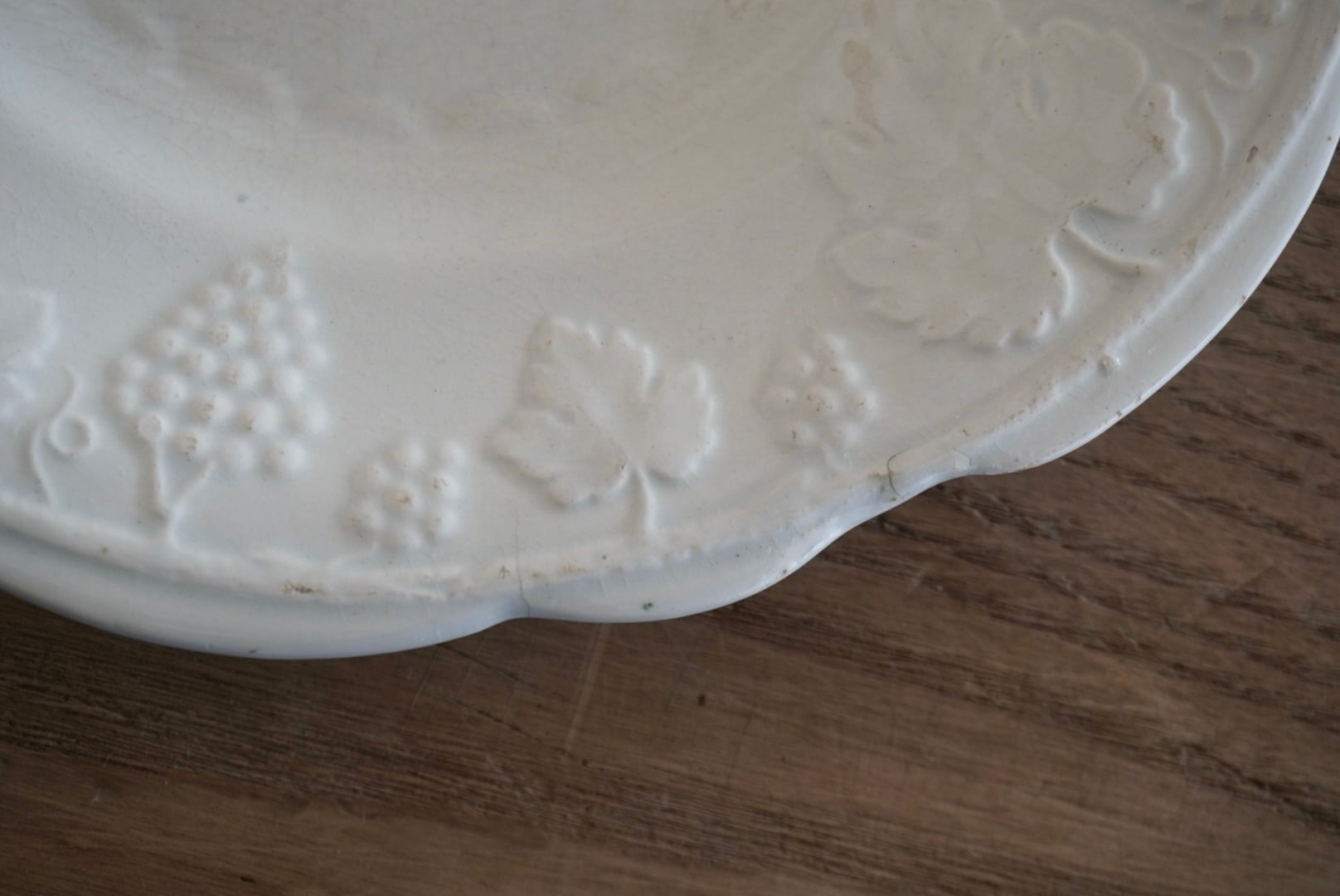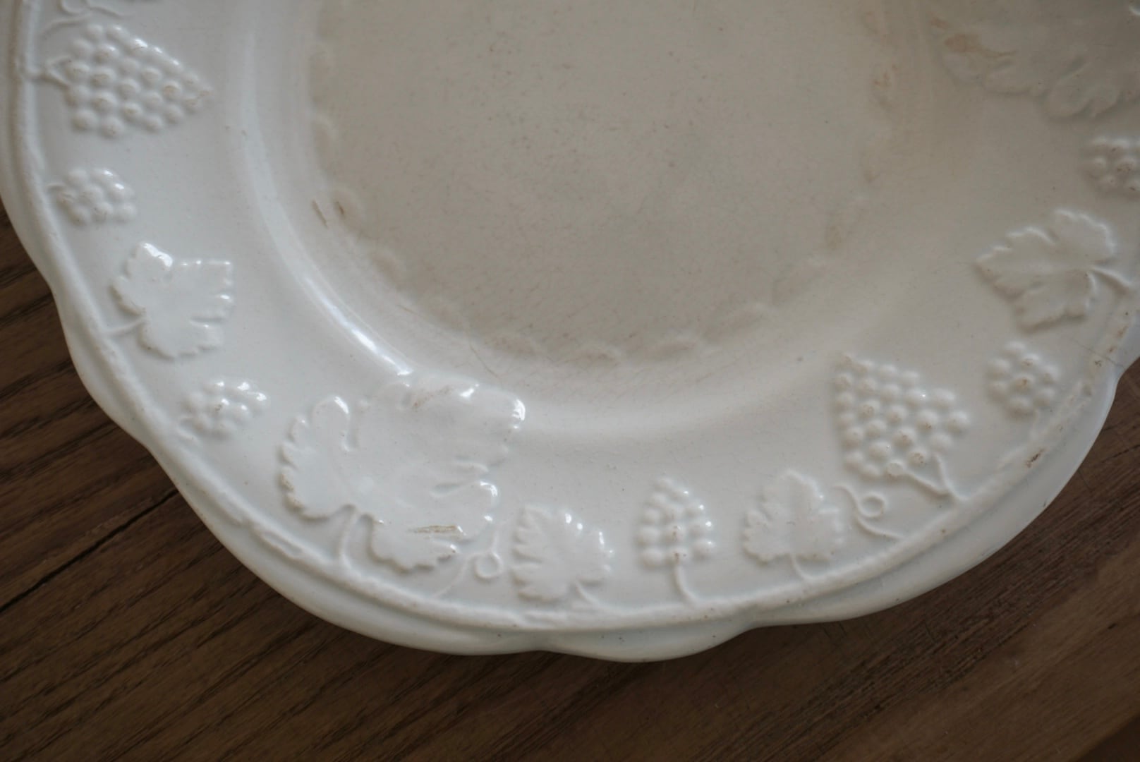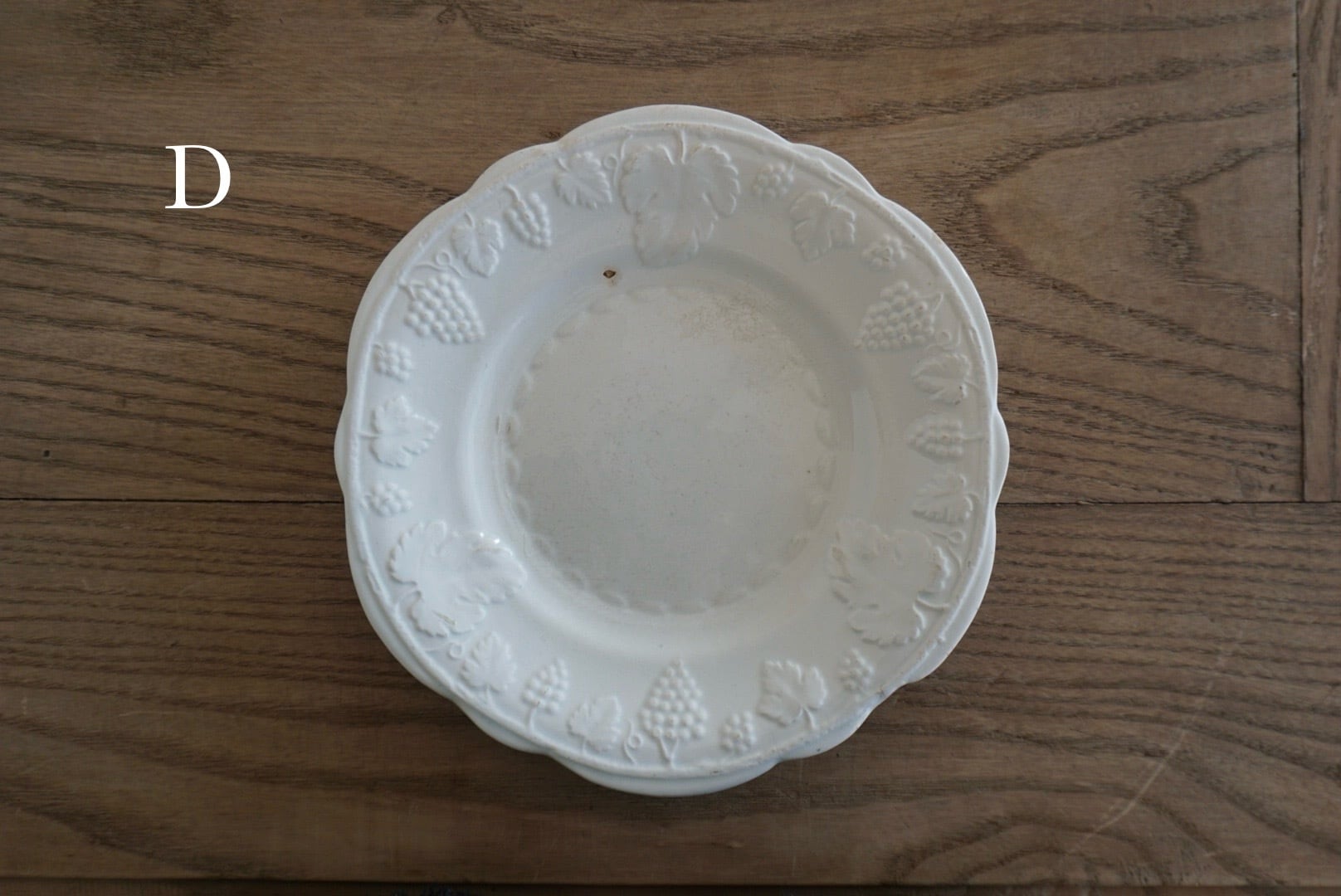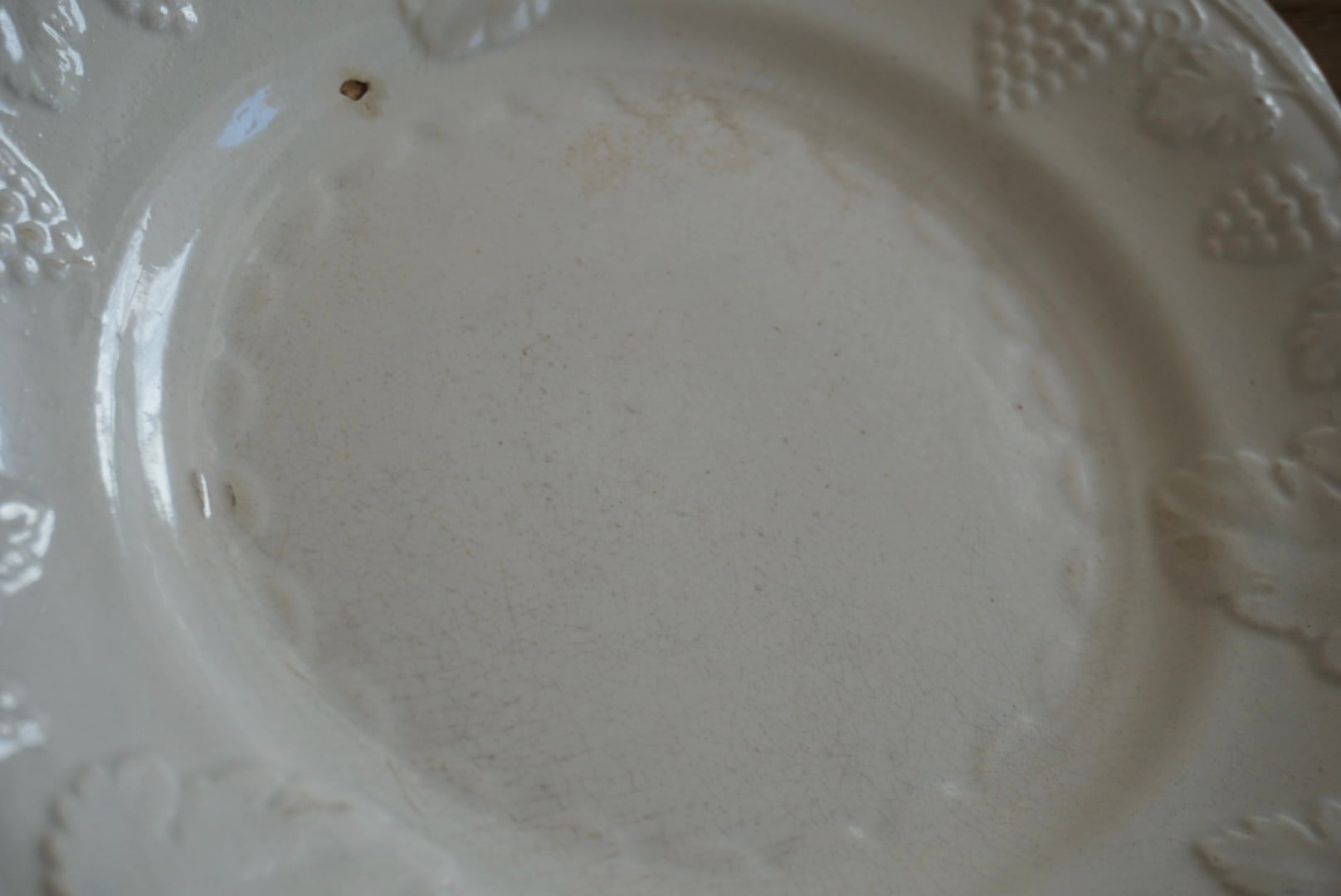 スイスとの国境に程近いSalins-les-Bains(サラン・レ・バン)という街で創業したSalins窯より、大ぶりの葡萄レリーフが可愛らしいデザートプレートです。古さを感じる質感と美しさ花リムが良いバランスの一枚です。