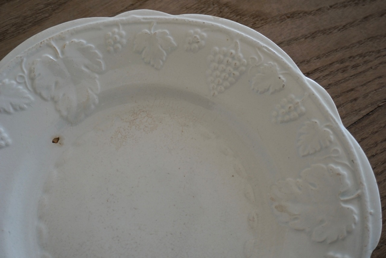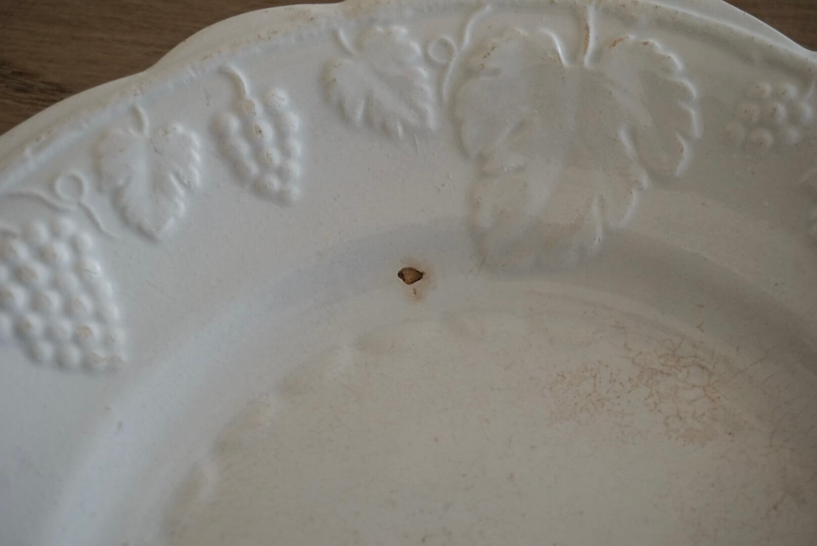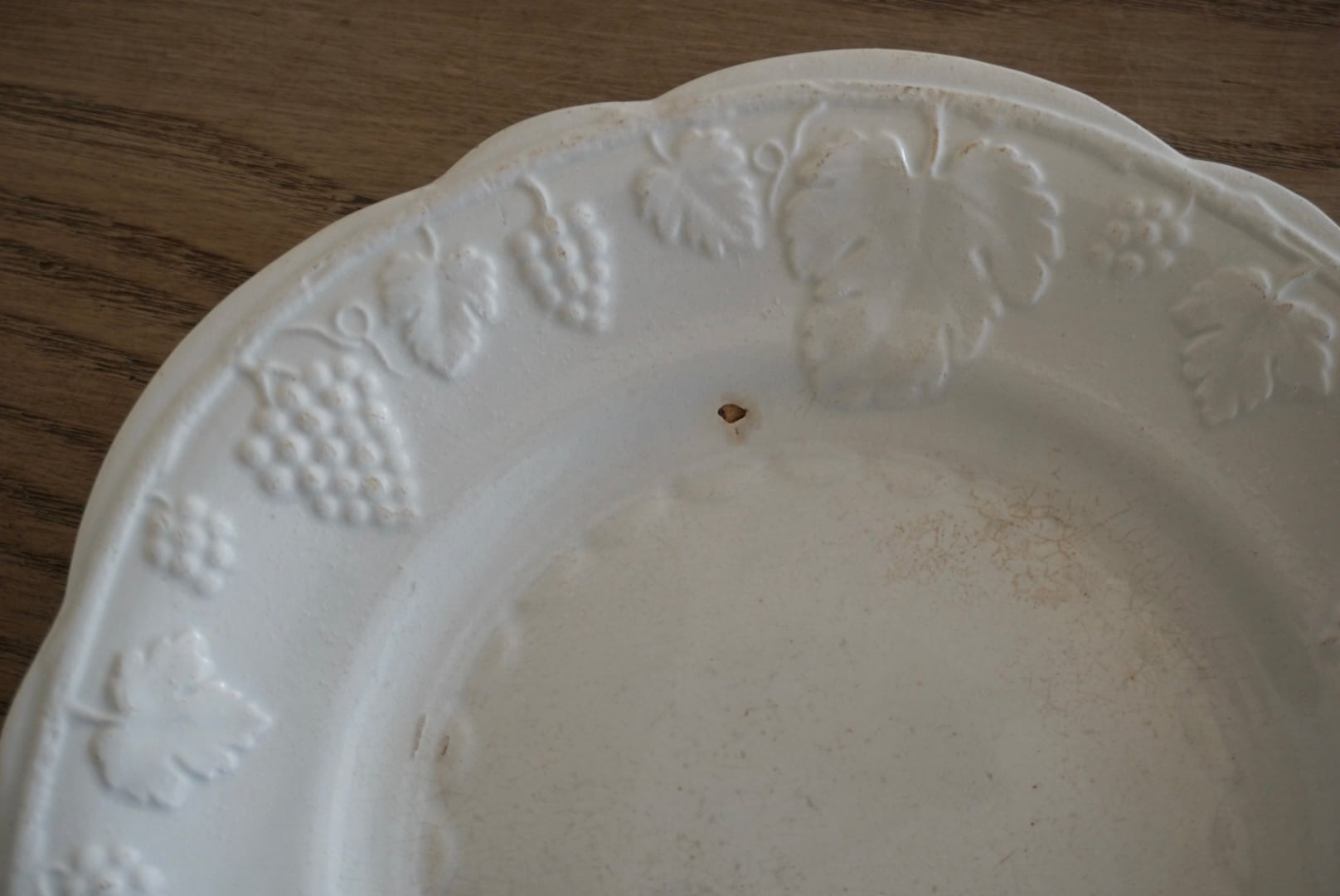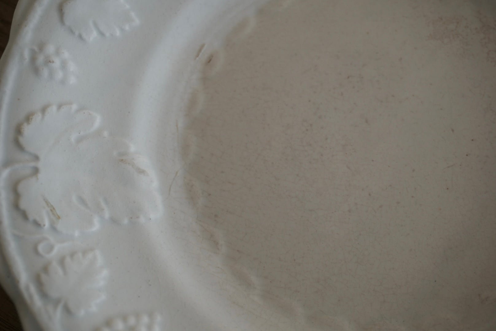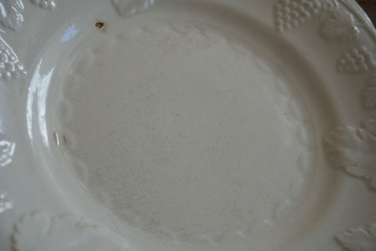 スイスとの国境に程近いSalins-les-Bains(サラン・レ・バン)という街で創業したSalins窯より、大ぶりの葡萄レリーフが可愛らしいデザートプレートです。古さを感じる質感と美しさ花リムが良いバランスの一枚です。