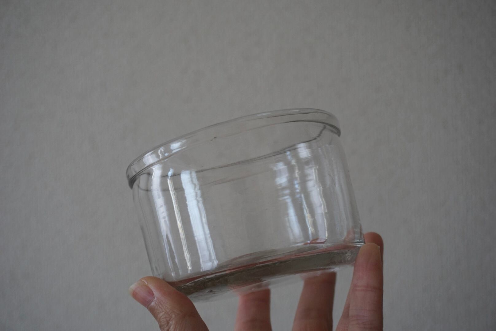 ゆらゆらとした吹きガラスならではの表情が美しいコンフィチュールポットです。元の用途のようにジャムを入れて使用しても良いですし、副菜やソースをサーブする器にしても良いですし、これからの季節は球根の水耕栽培にも良いですね。