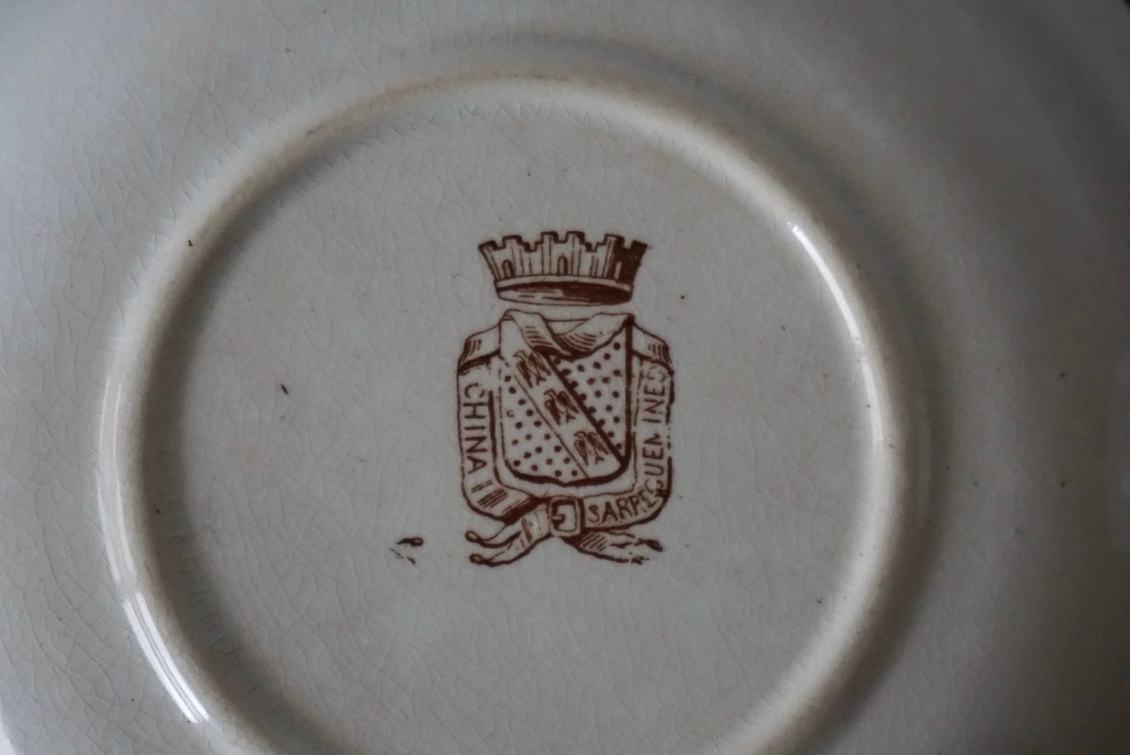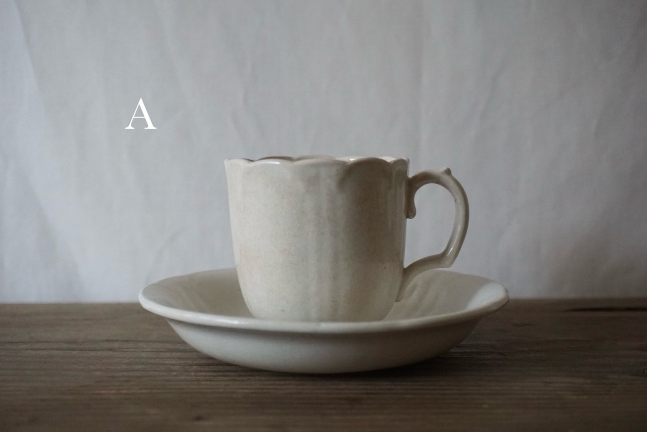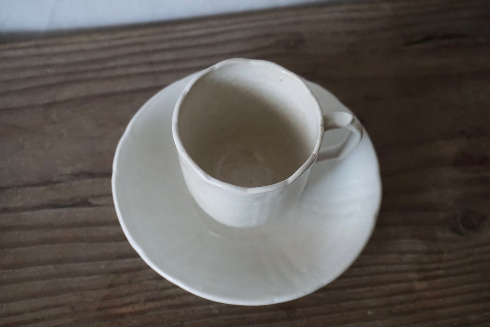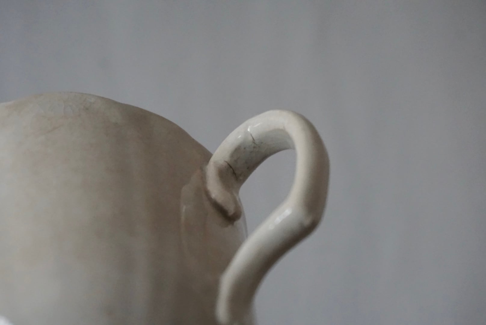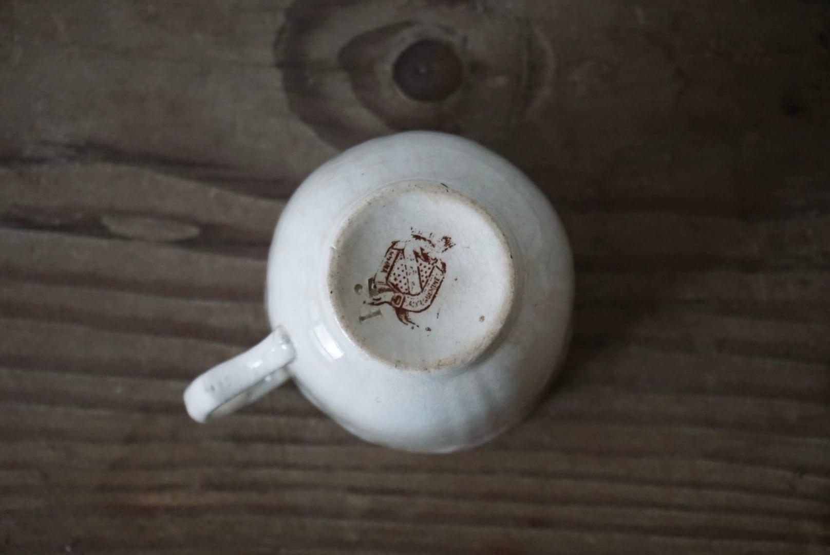 ロレーヌ地方 Sarreguemines窯より、シンプルで洗練されたデザインのカップ&ソーサーです。さりげなくレリーフが入っており、縁の部分も花リムになっているのでちょっぴり乙女な要素も感じられて可愛らしいです。同時に出品しているティーポットとの相性も抜群です。