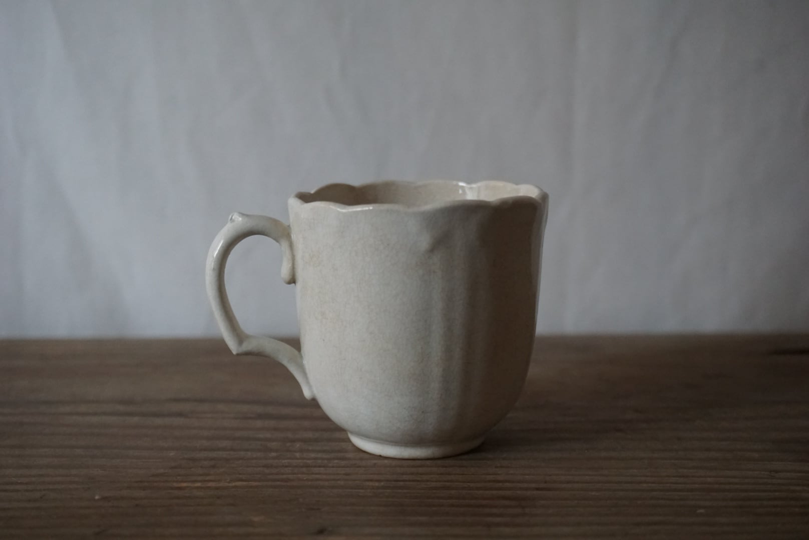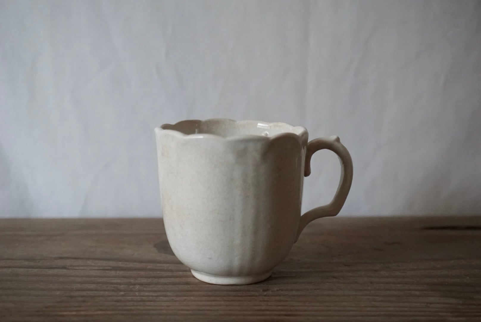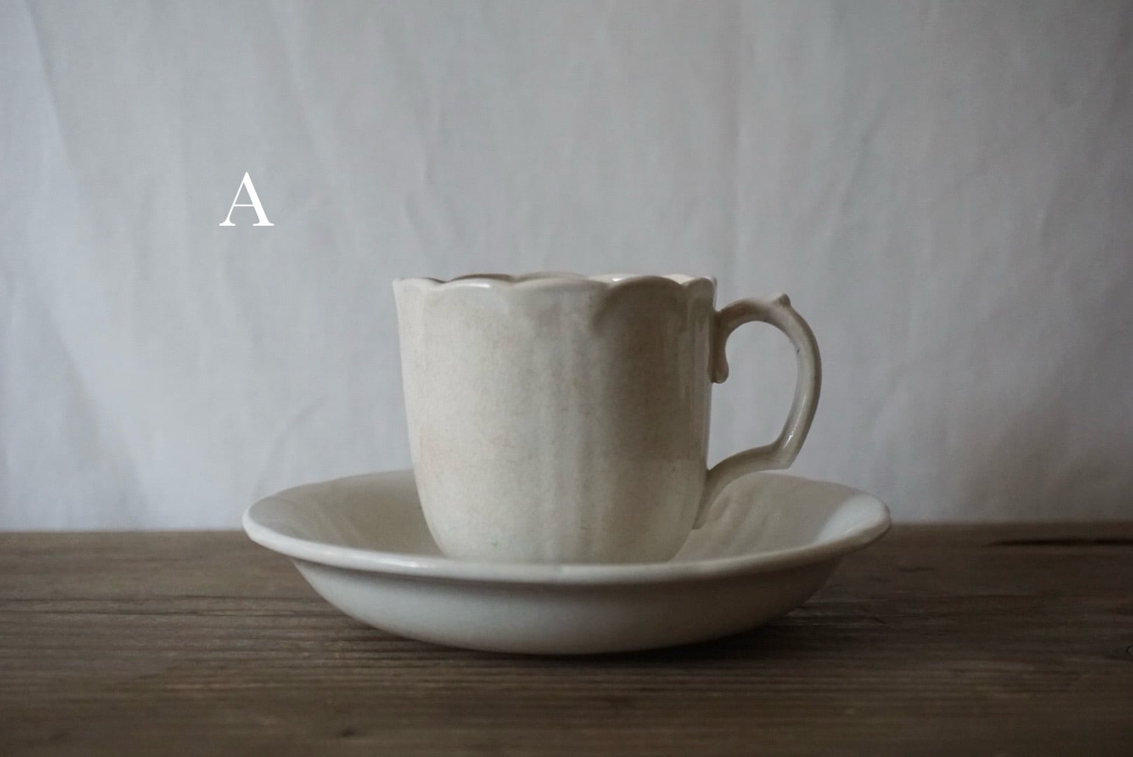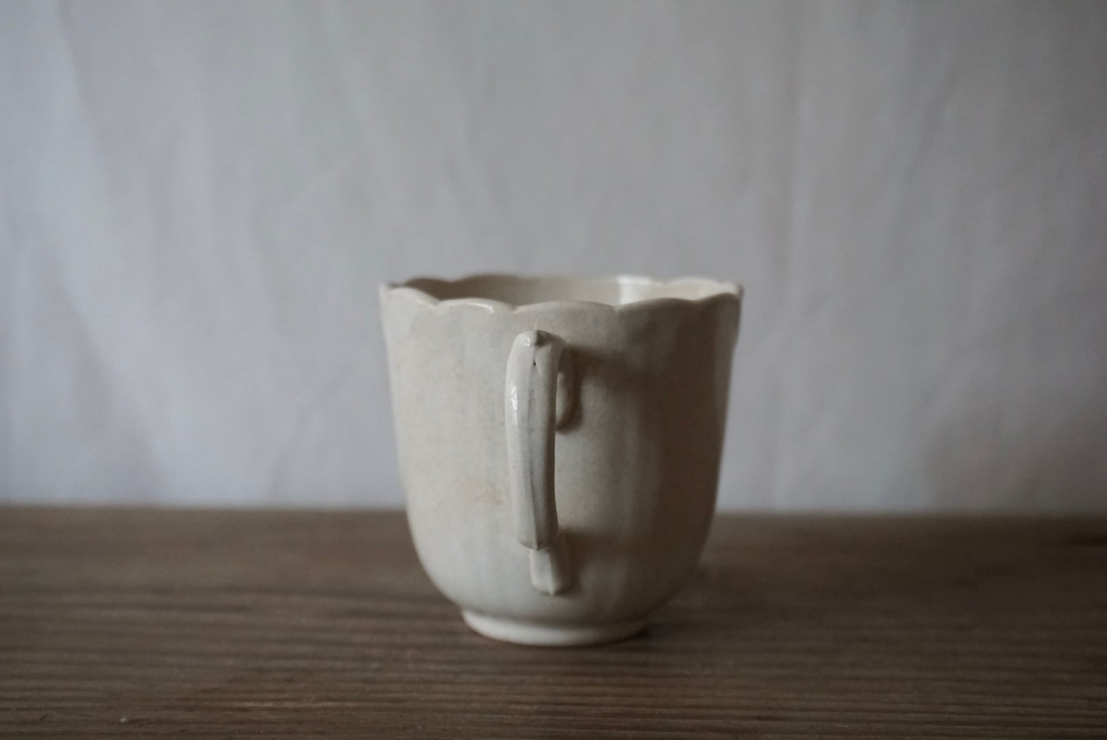 ロレーヌ地方 Sarreguemines窯より、シンプルで洗練されたデザインのカップ&ソーサーです。さりげなくレリーフが入っており、縁の部分も花リムになっているのでちょっぴり乙女な要素も感じられて可愛らしいです。同時に出品しているティーポットとの相性も抜群です。