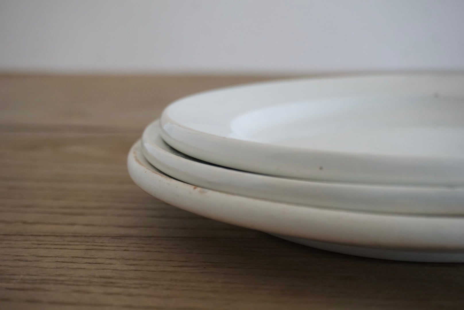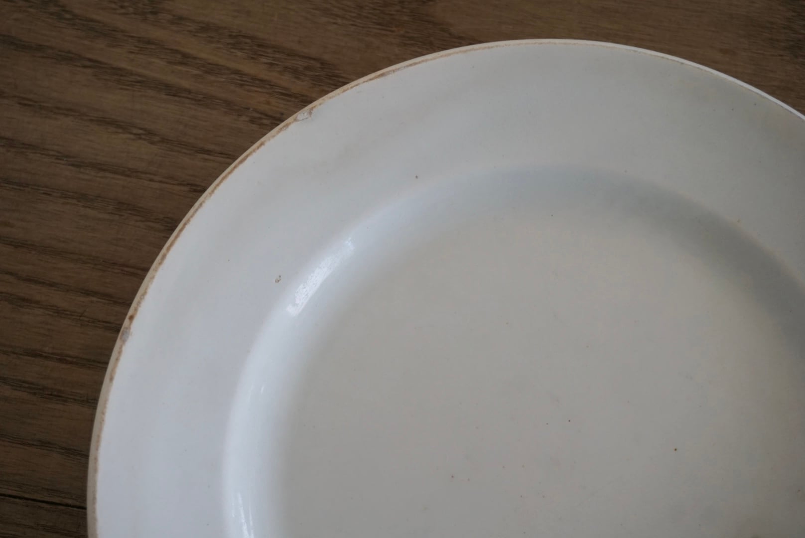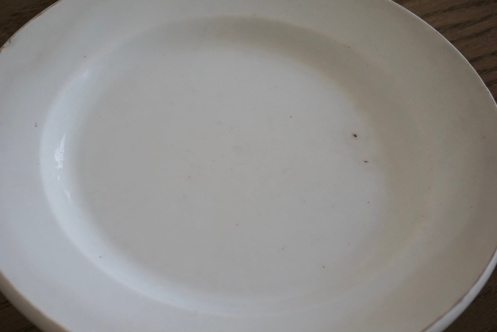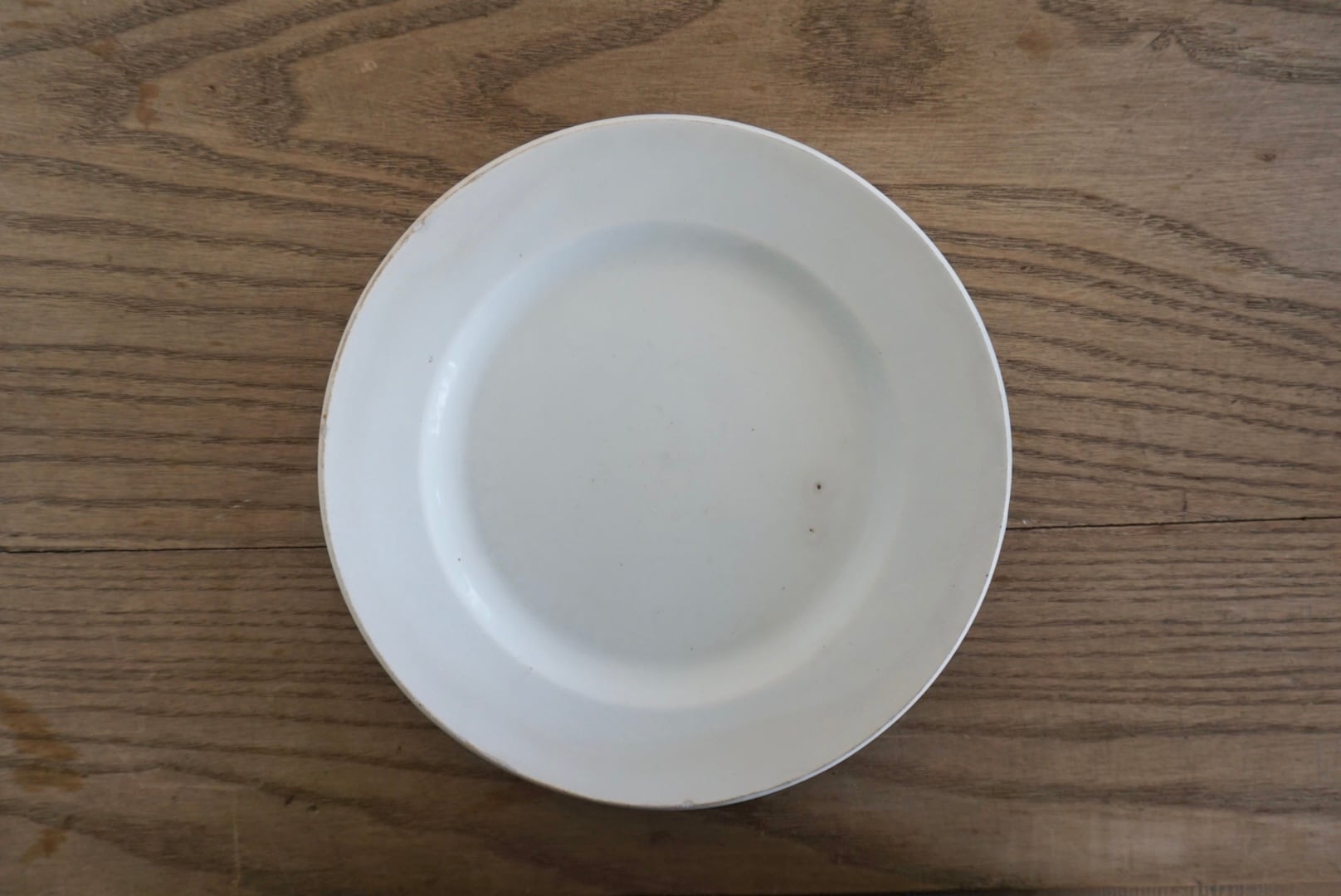 パリ近郊 Creil et Montereau窯の地厚皿です。主に修道院や宿舎、ビストロなどの多くの人が利用する施設で使用されたため、厚く頑丈な作りになっています。CreilとMontereauが合併後すぐのドラゴン刻印の時代のもので、個人的にこの刻印のものは質が高いと感じます。アンティークらしい絶妙な枯れ感がたまらないですね。※3枚重ねた写真の1番下のものです。