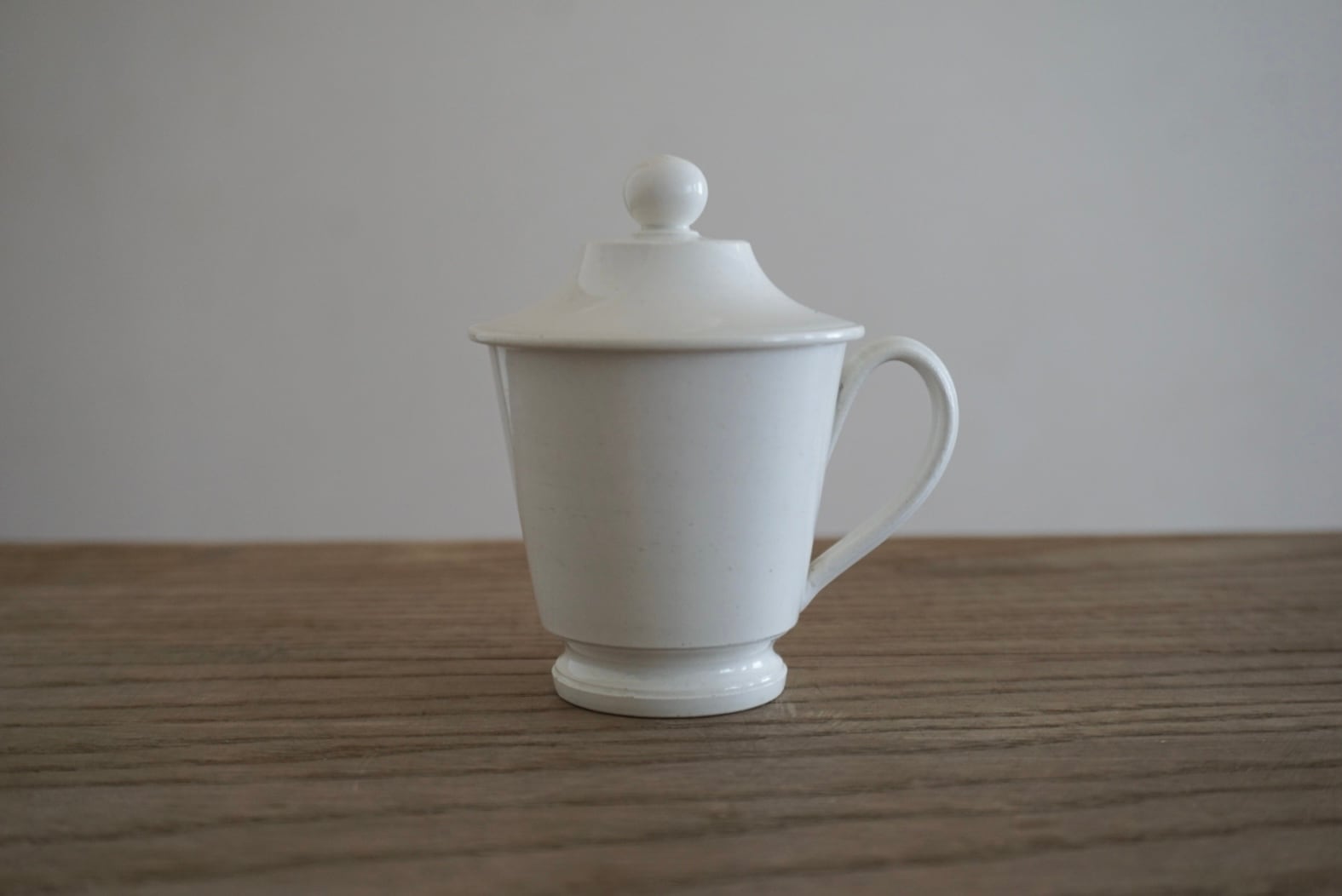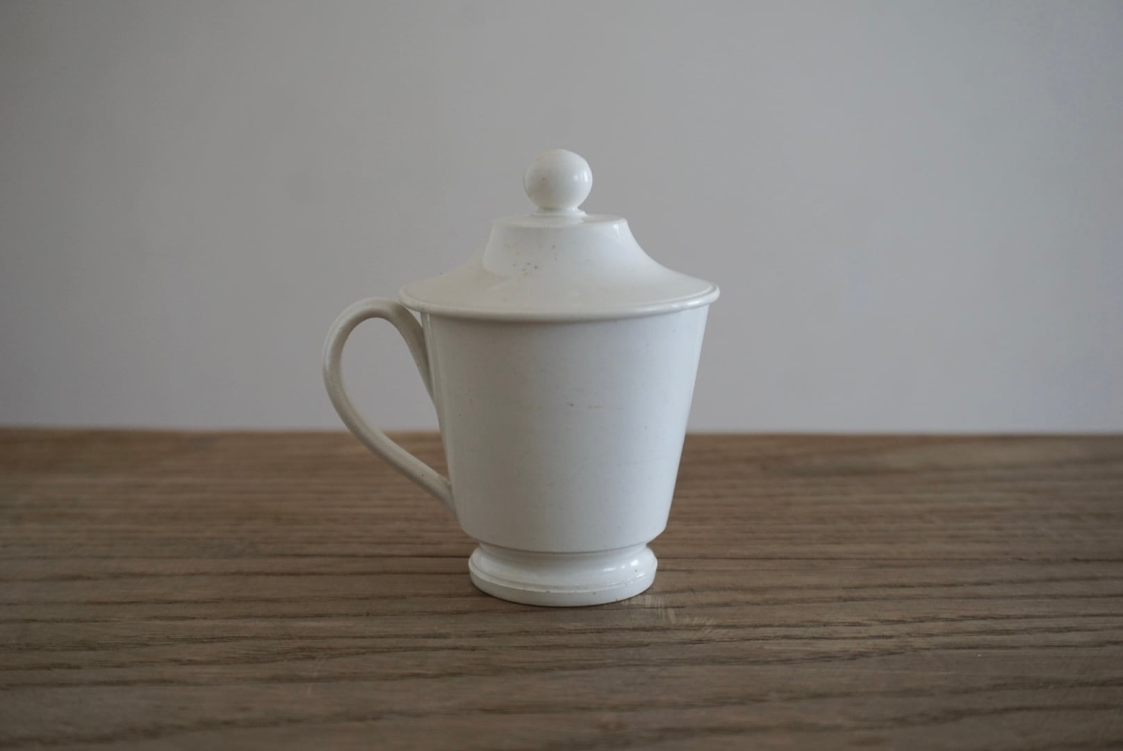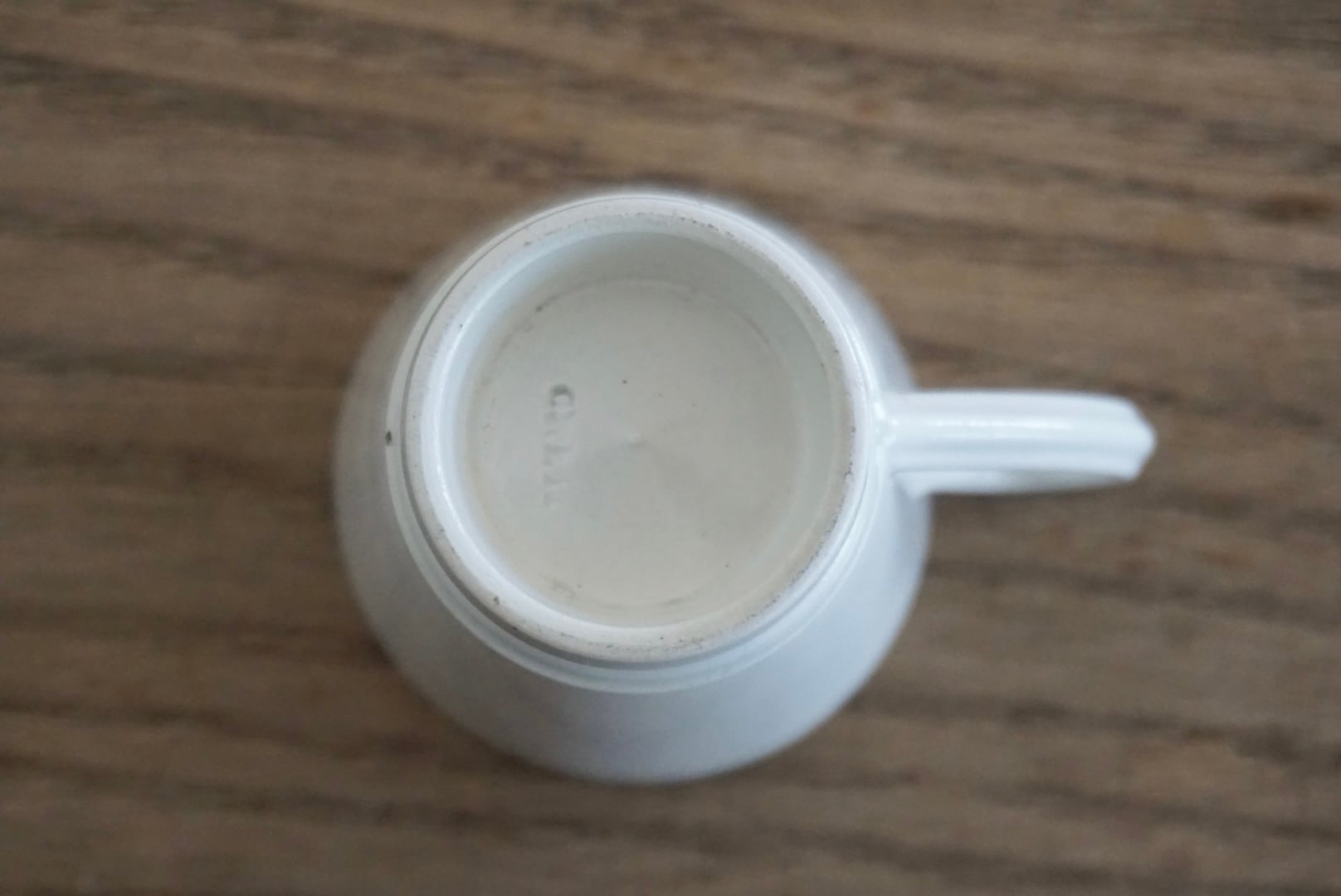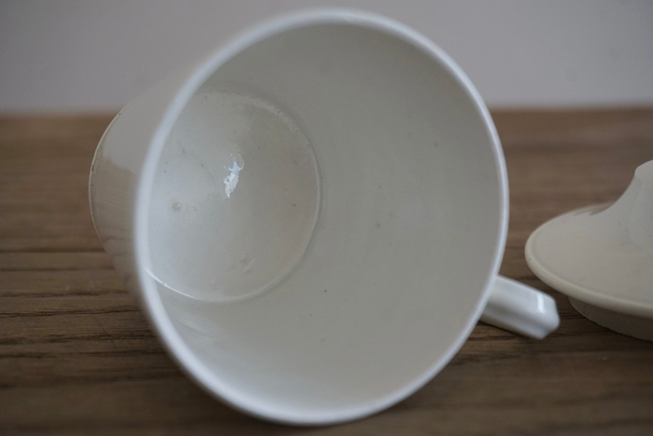 パリ近郊 Creil窯より、シャープでスッとした佇まいのクリームポットです。ファイアンスフィーヌのクリームポットで刻印までしっかりと入っているものはなかなか見かけず、手にできて嬉しかったです。また、今まで見てきた同じデザインの個体の中でも若干小さめの作りで、ディネットなんかと合わせても素敵だと思います。