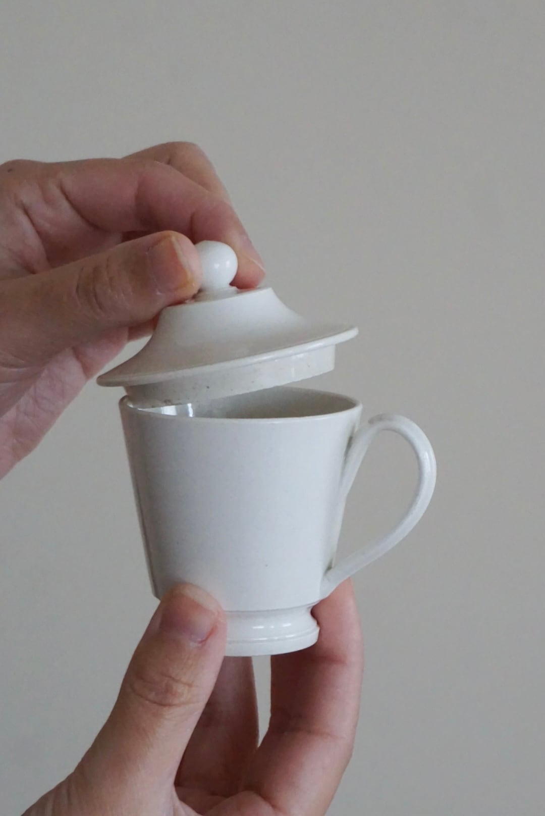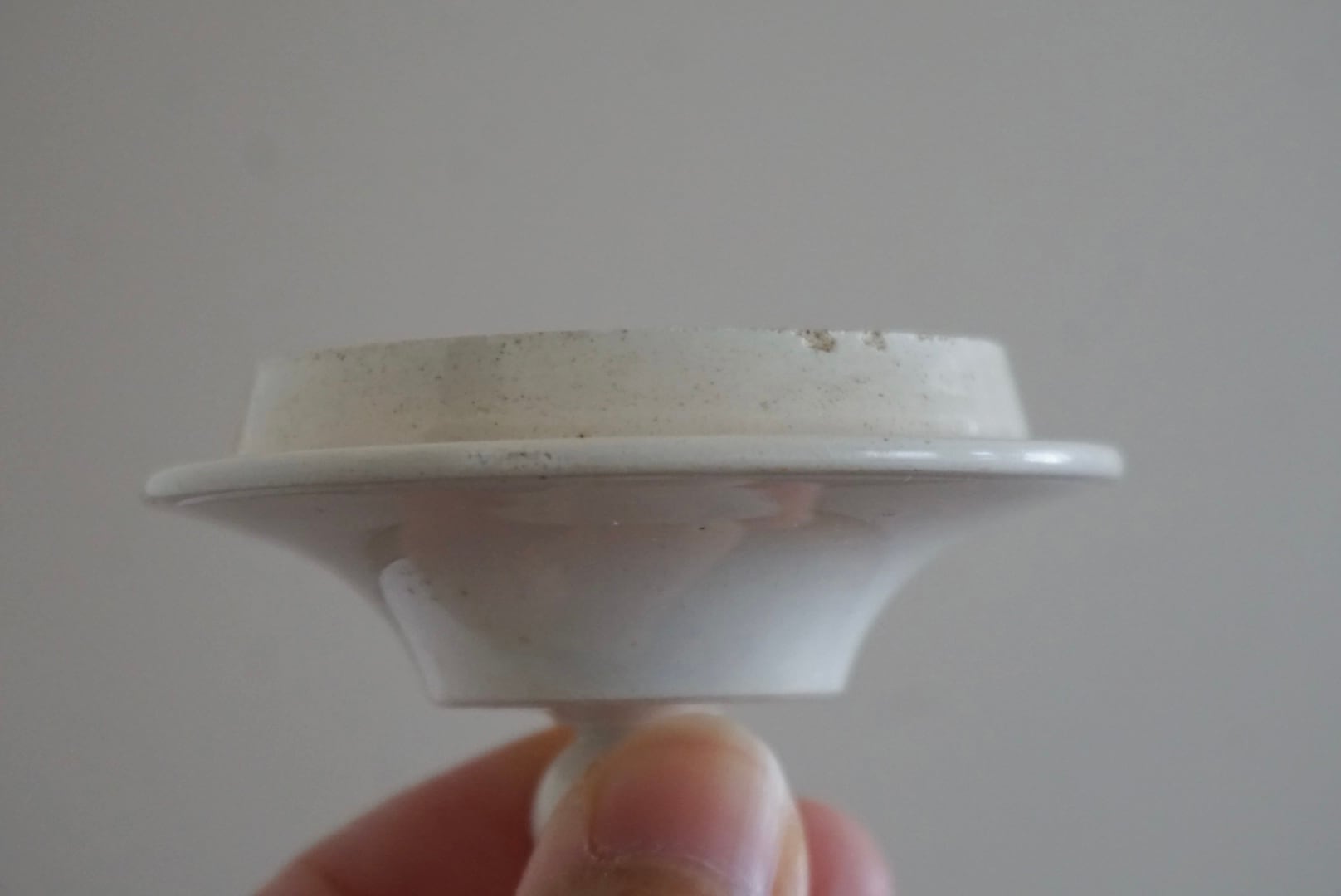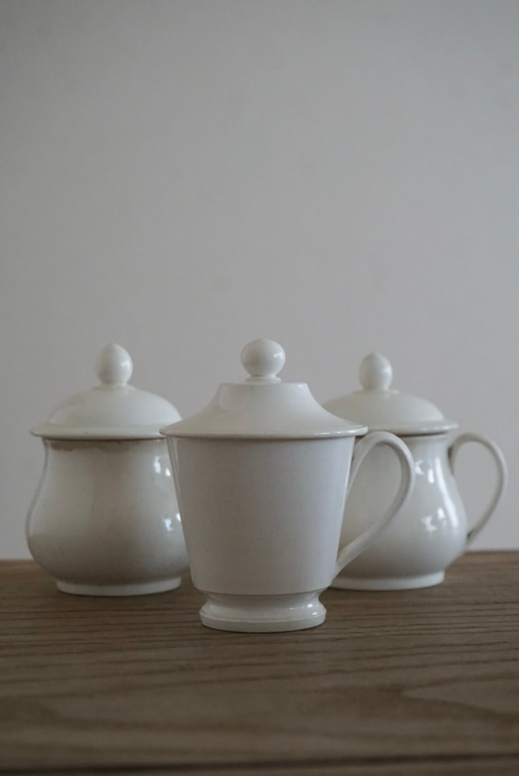パリ近郊 Creil窯より、シャープでスッとした佇まいのクリームポットです。ファイアンスフィーヌのクリームポットで刻印までしっかりと入っているものはなかなか見かけず、手にできて嬉しかったです。また、今まで見てきた同じデザインの個体の中でも若干小さめの作りで、ディネットなんかと合わせても素敵だと思います。