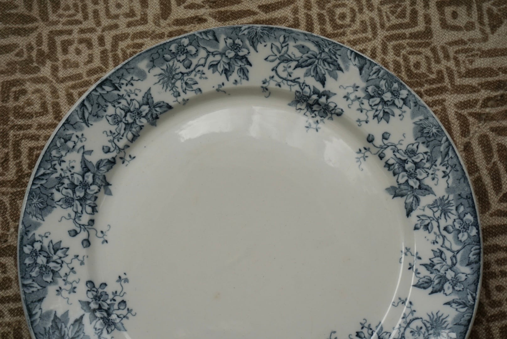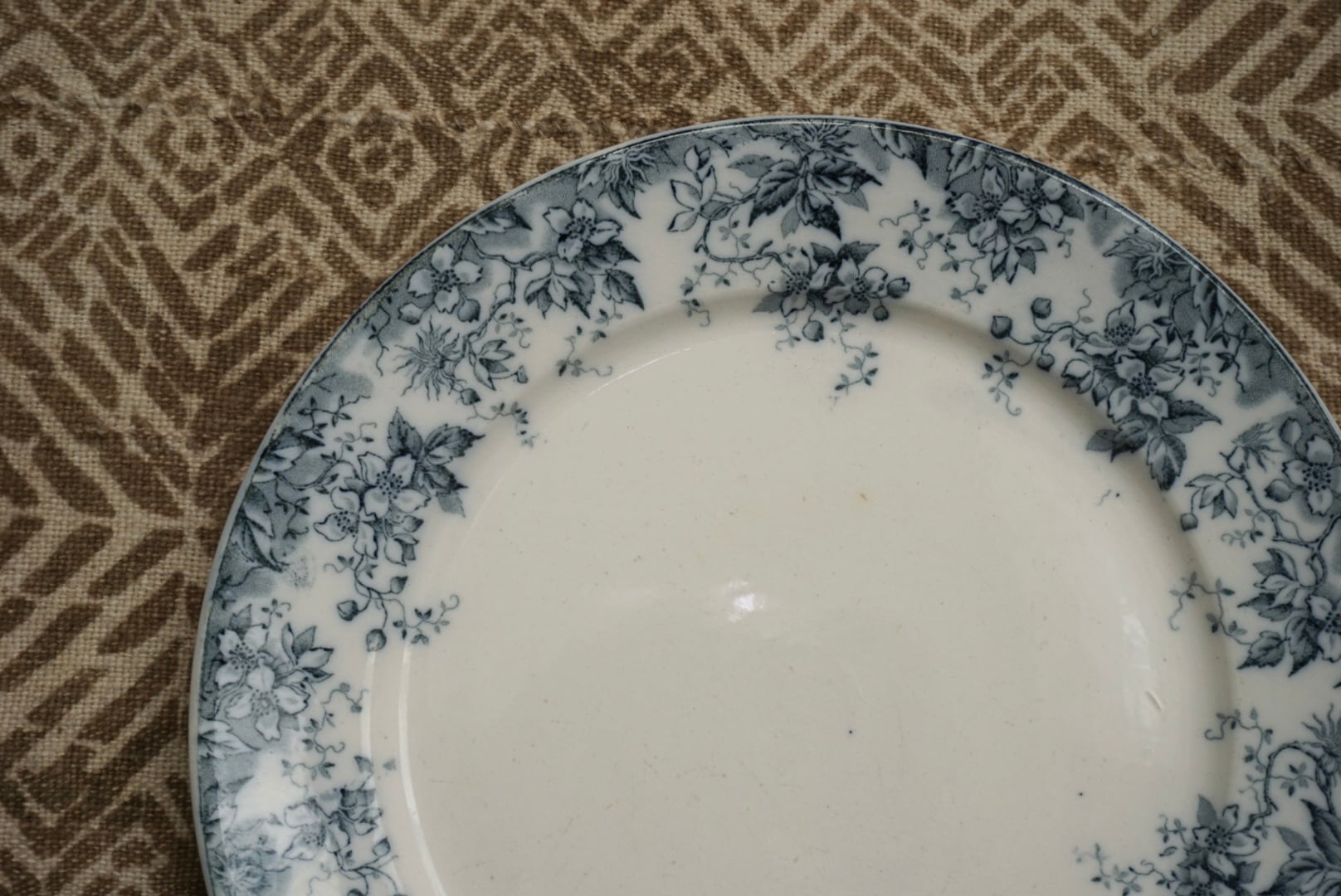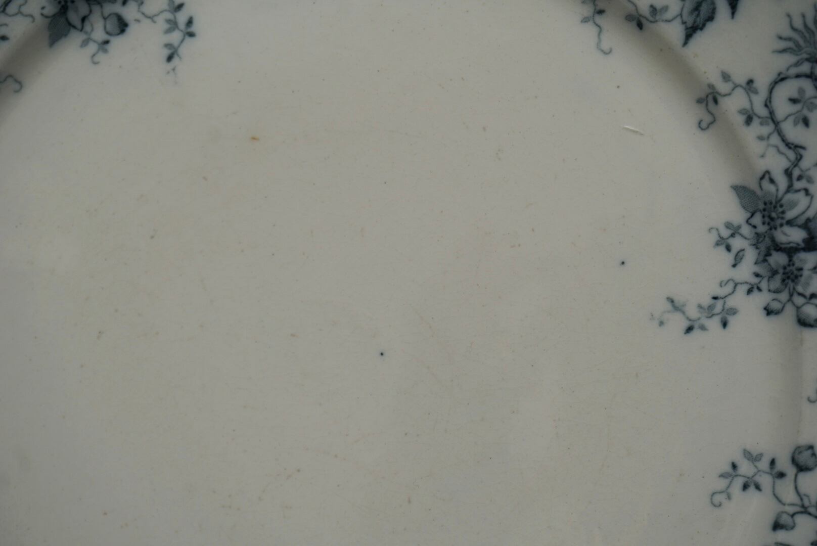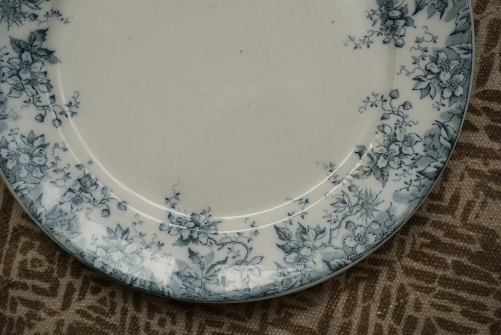 ロレーヌ地方 Sarreguemines窯より、ALPHANDシリーズのデザートプレートです。ALPHANDといえば茶色のイメージがありましたが、こちらはグレー味が強い青で、初めて見るお色です。繊細な転写のデザインとインクの色味が相まって、ふわっと儚げな印象です。