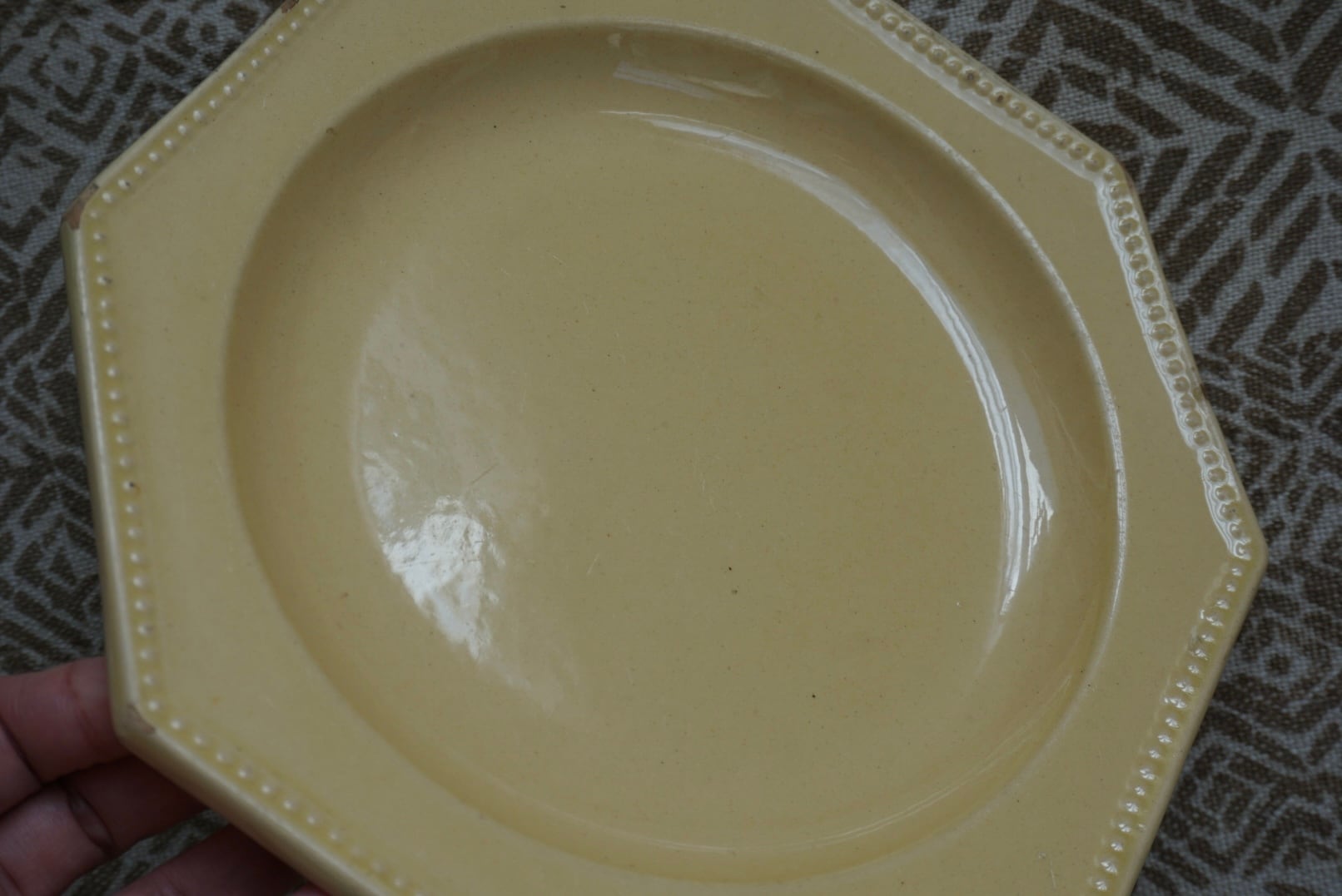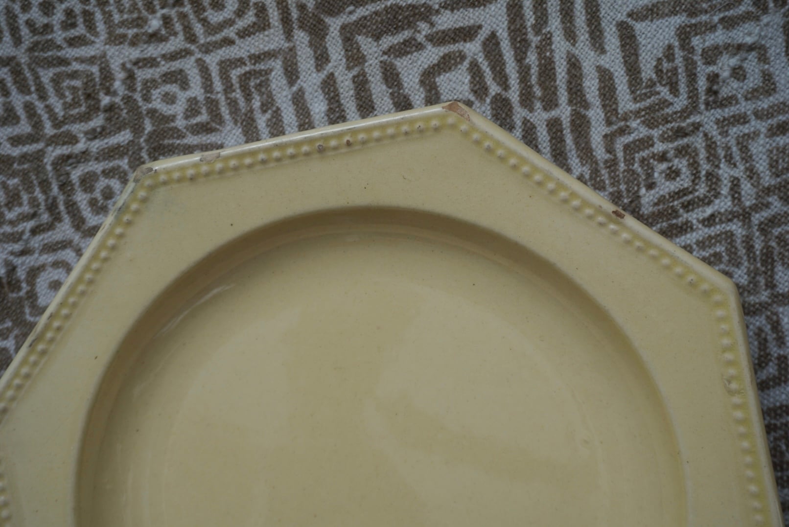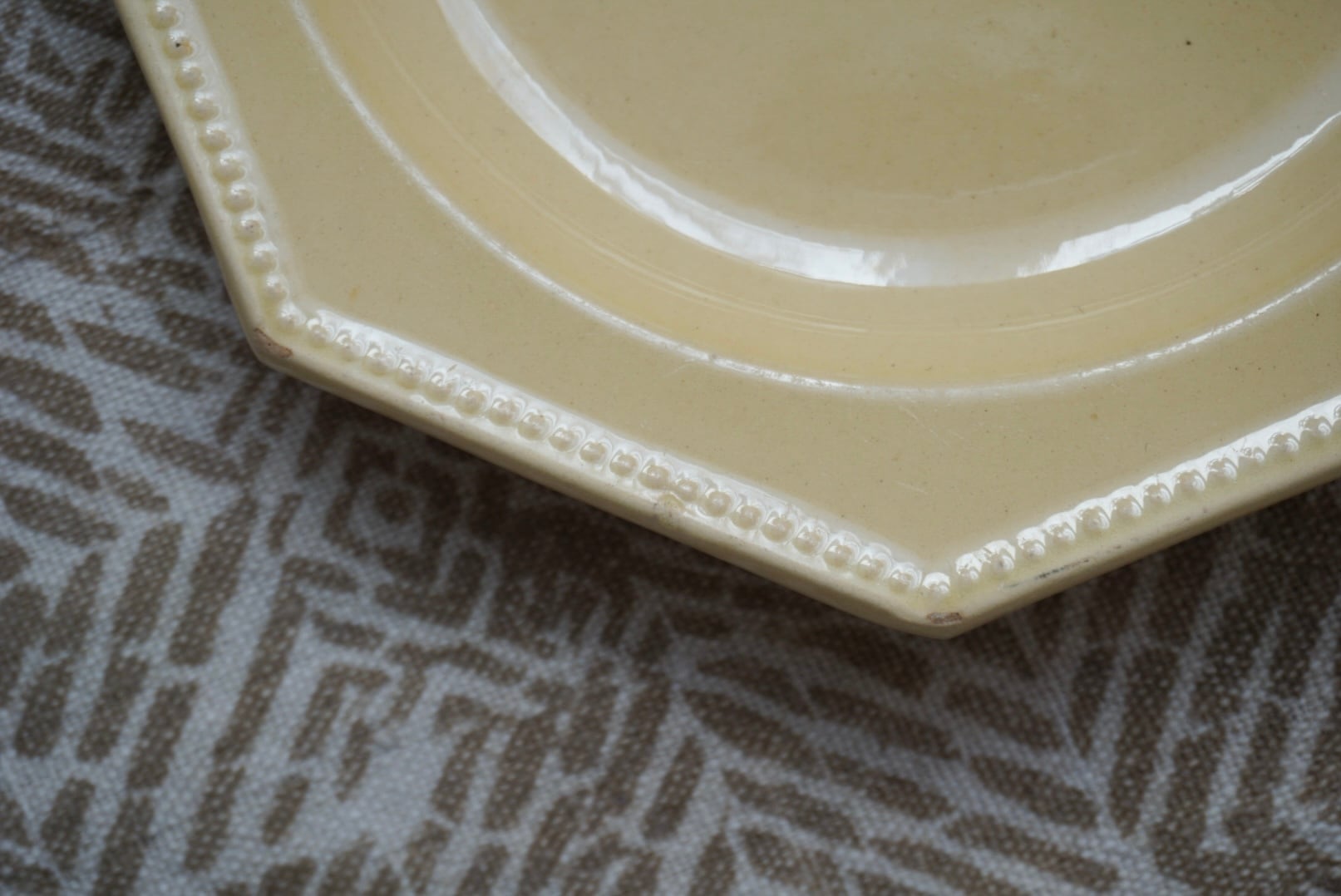 南フランスより、アプト焼きのオクトゴナルプレートです。南フランスには仕入れの際に何度か足を運んでいますが、そこに暮らす人々の大らかで優しい雰囲気をそのまま移したかのような柔らかい黄色の釉薬で、目に入る度に気持ちが晴れやかになります。深さもあり、汁気があるものをのせても◎