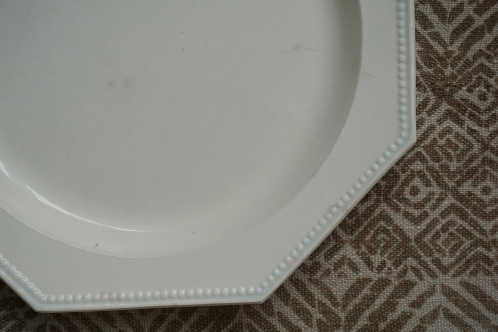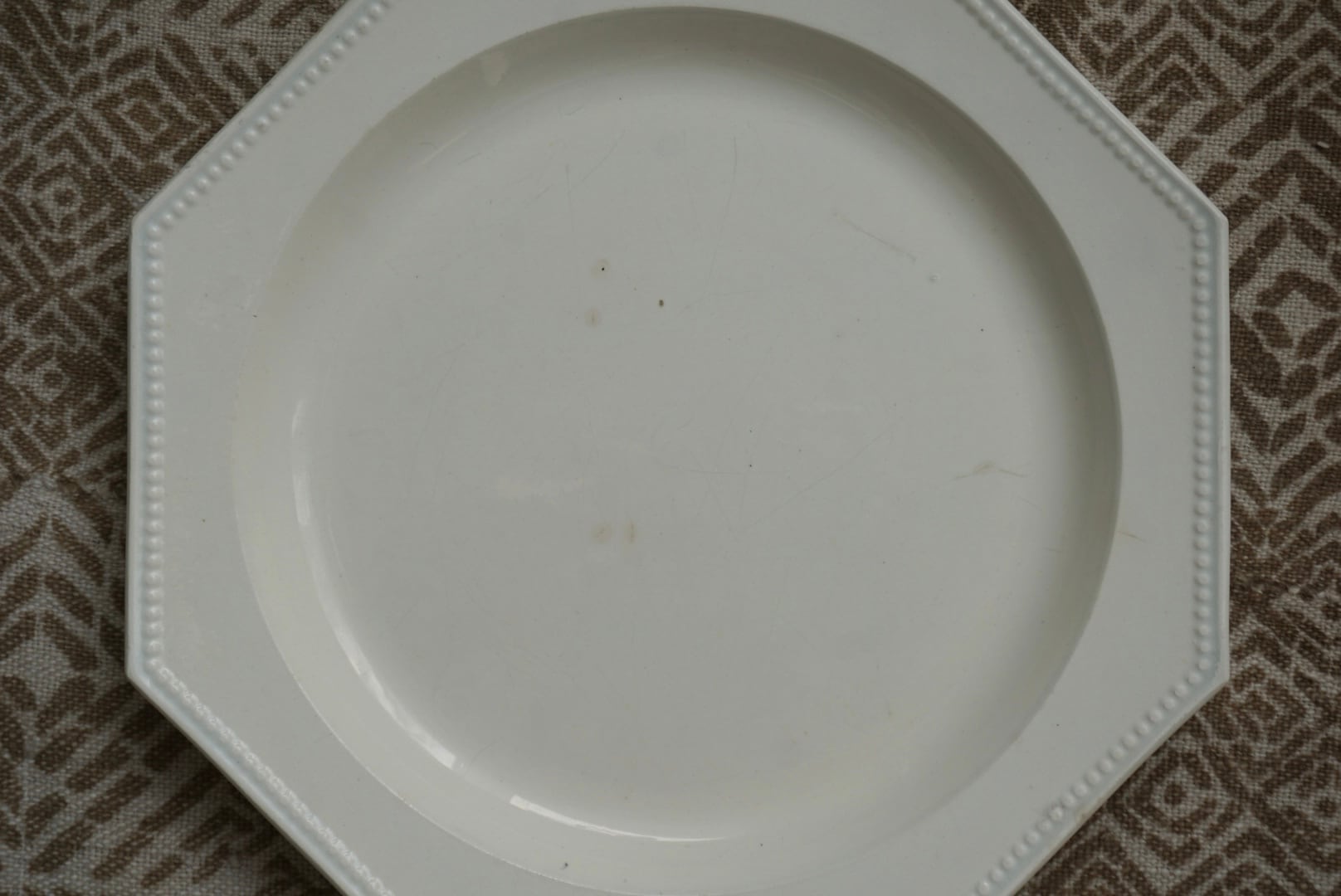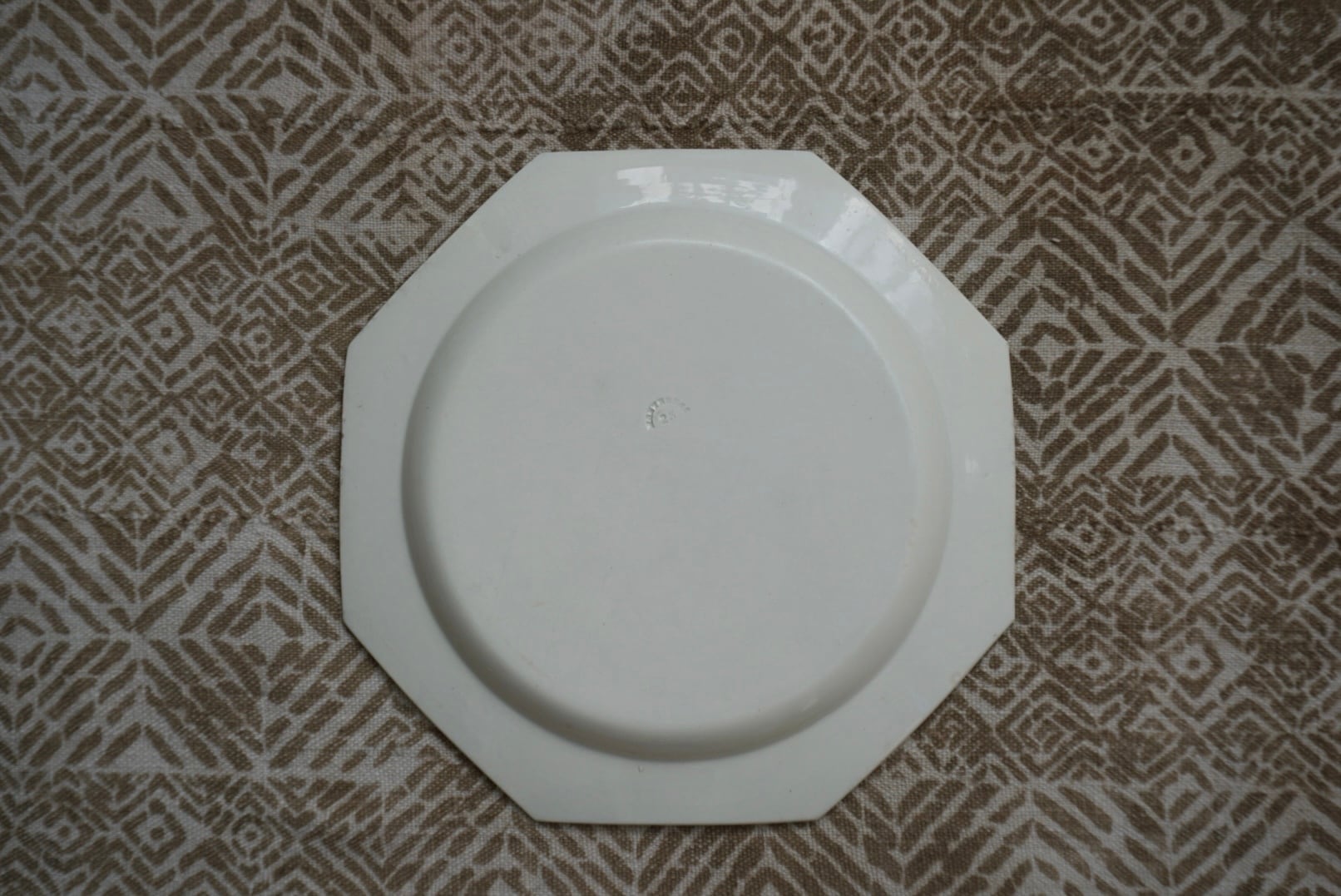 パリ近郊 Montereau窯より、オクトゴナルのディナープレートです。ファイアンスフィーヌらしくエッジが効いているので、何も載せていなくても陰影がついて絵になります。見込みが広く傾斜がないため、盛り付けたものが綺麗に見え、何にでも合わせやすく定番の器として持っておくと安心できるお品です。