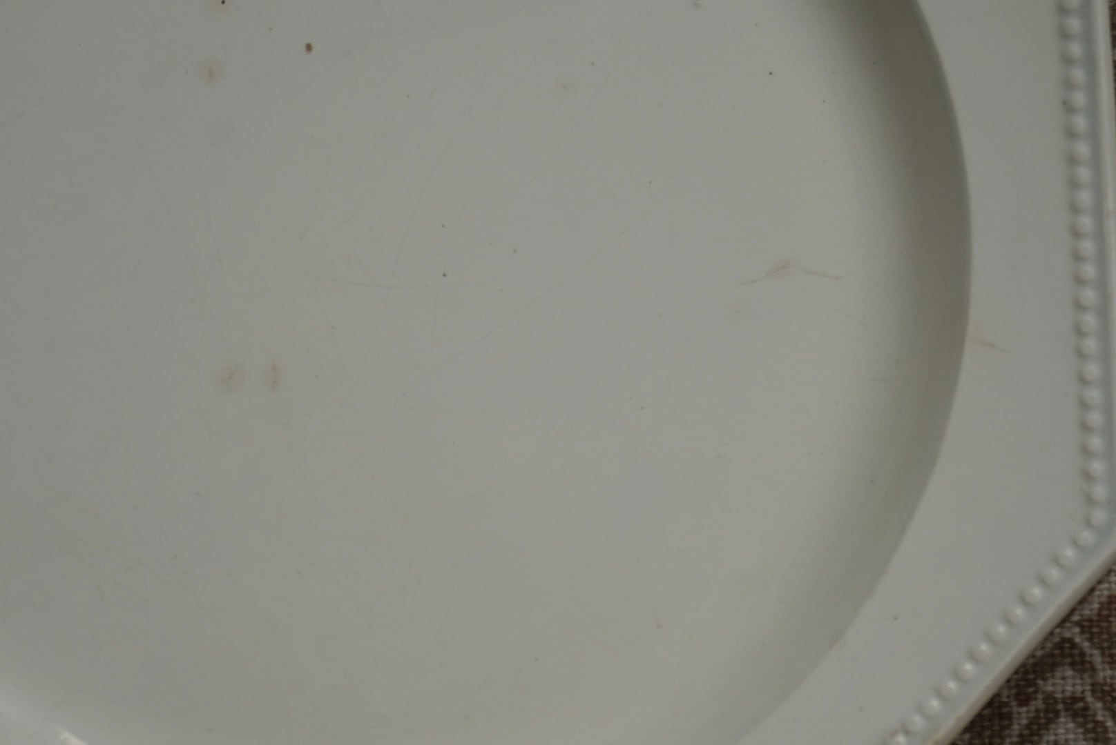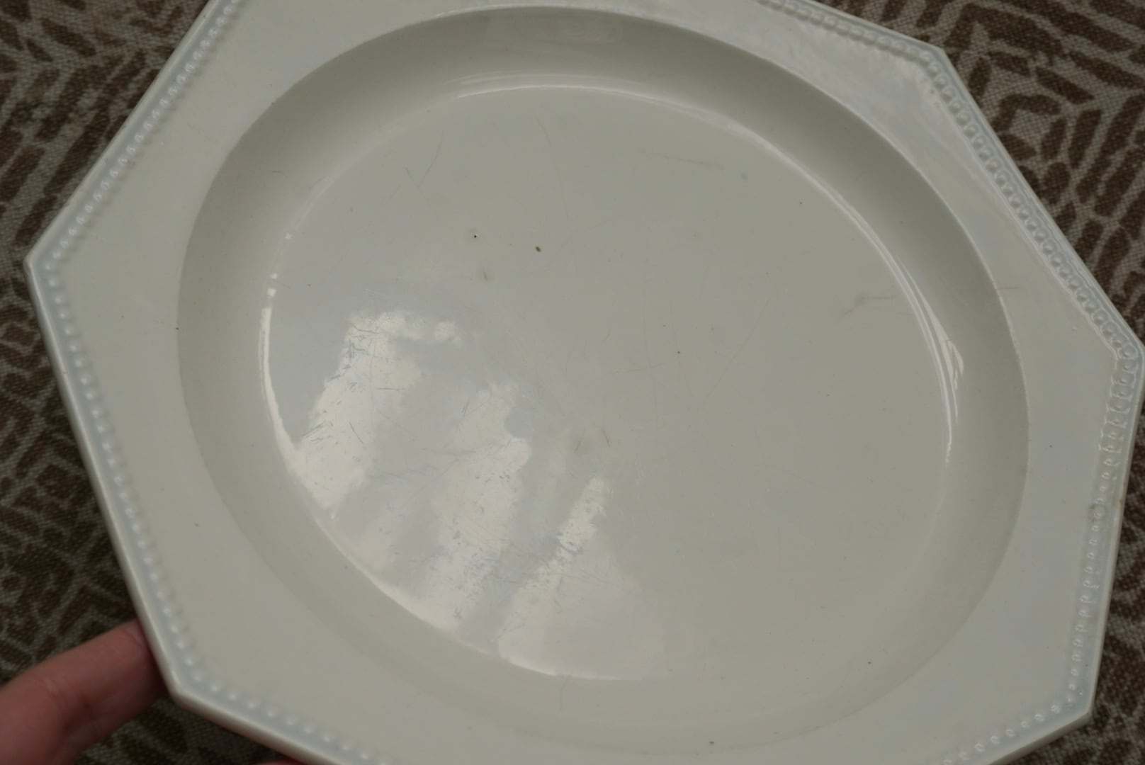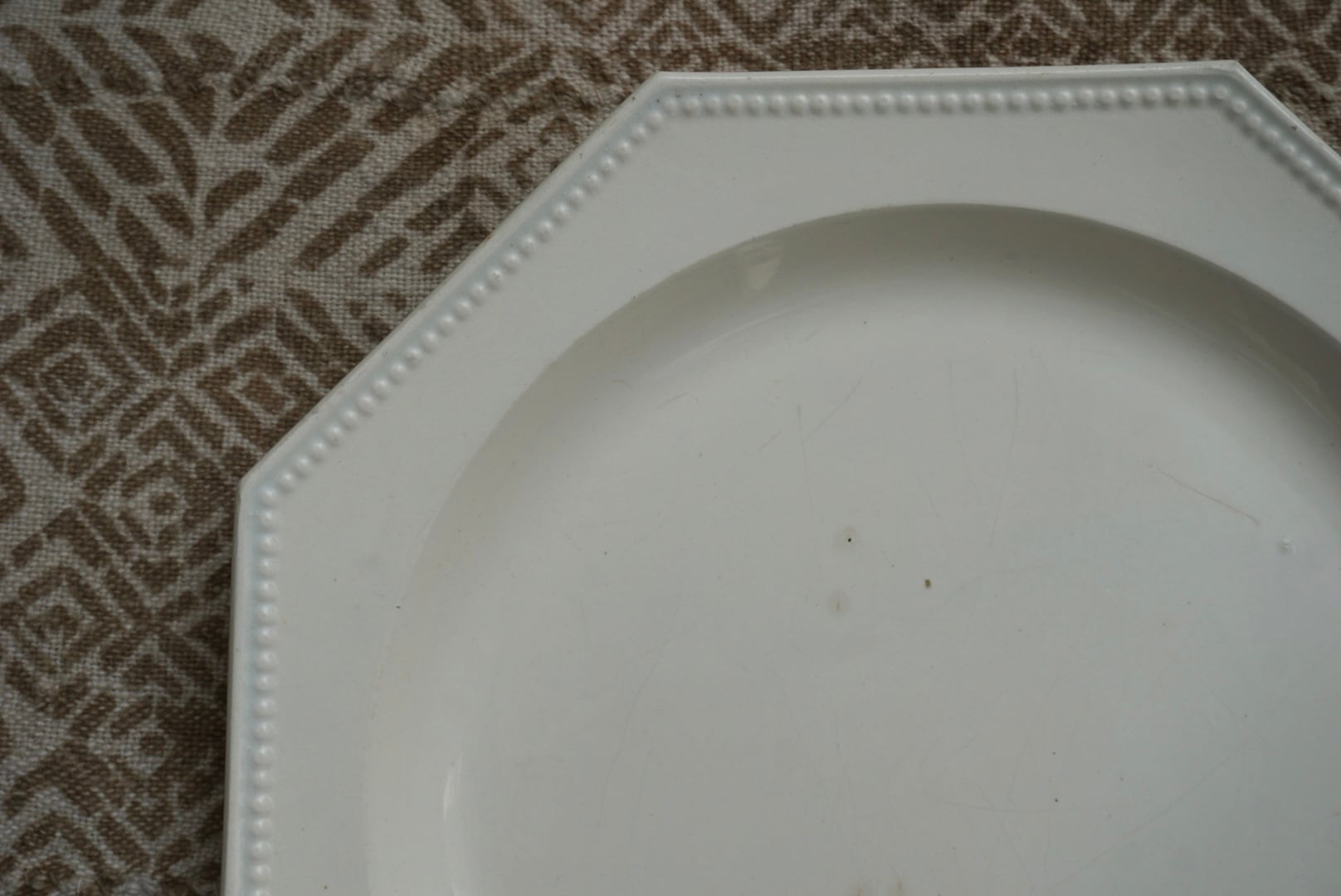 パリ近郊 Montereau窯より、オクトゴナルのディナープレートです。ファイアンスフィーヌらしくエッジが効いているので、何も載せていなくても陰影がついて絵になります。見込みが広く傾斜がないため、盛り付けたものが綺麗に見え、何にでも合わせやすく定番の器として持っておくと安心できるお品です。