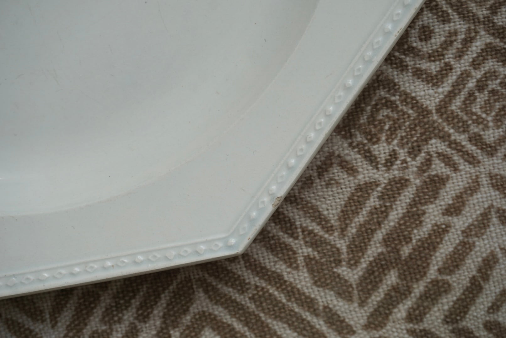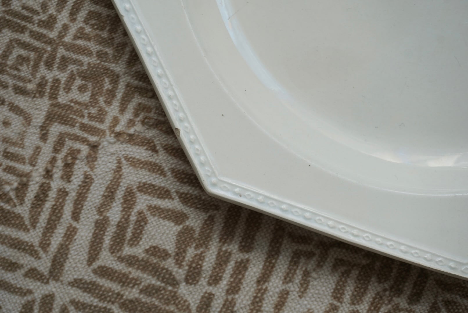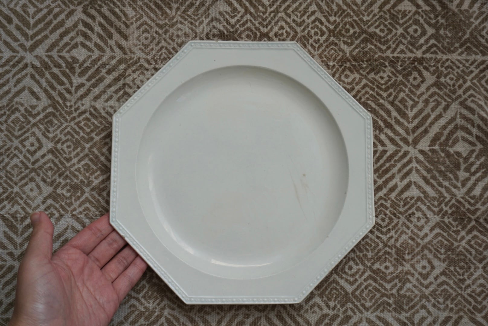 パリ近郊 Creil窯より、オクトゴナルのディナープレートです。やはりダイヤリムは特別感があって良きですね。見込みが広く傾斜がないため、盛り付けたものが綺麗に見え、何にでも合わせやすく、定番の器として持っておくと安心できるお品です。
