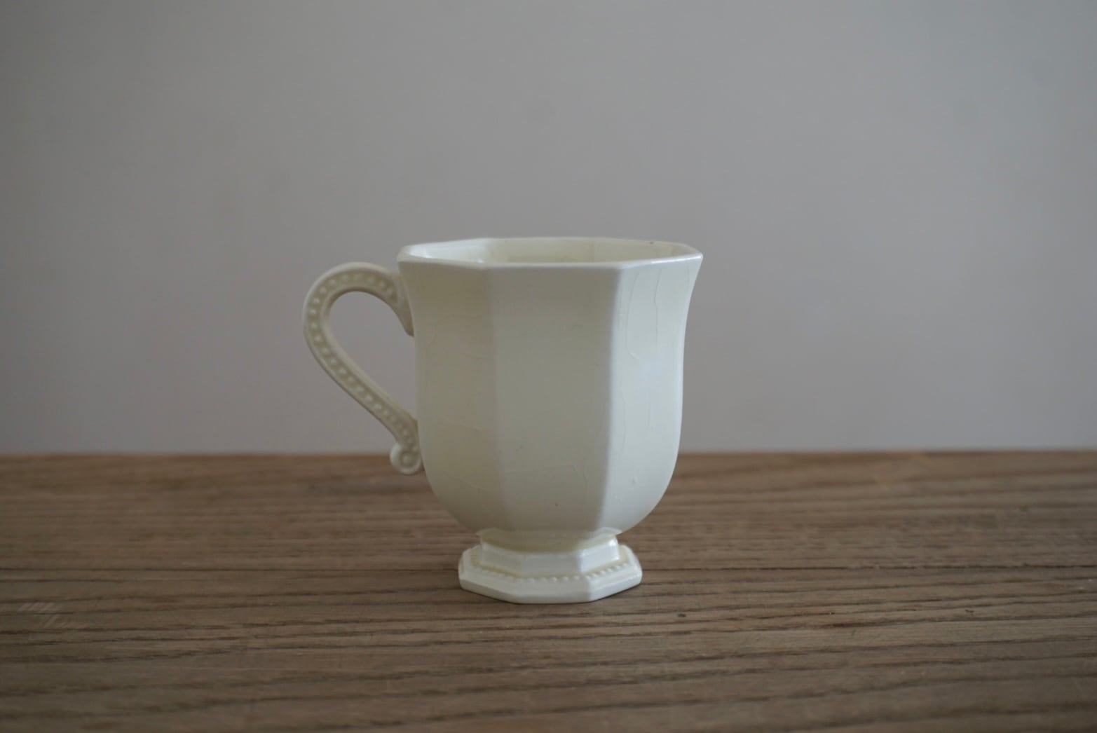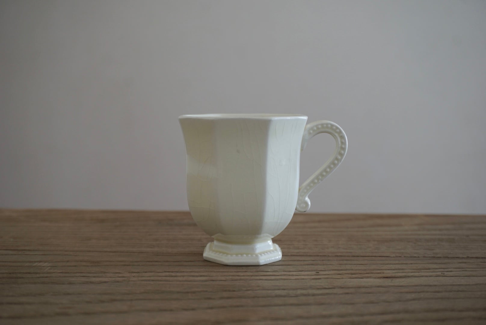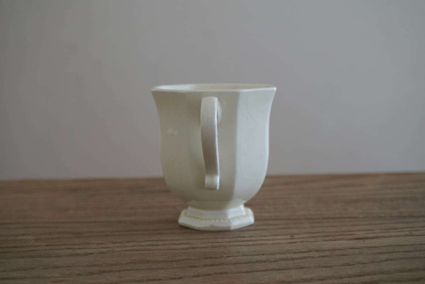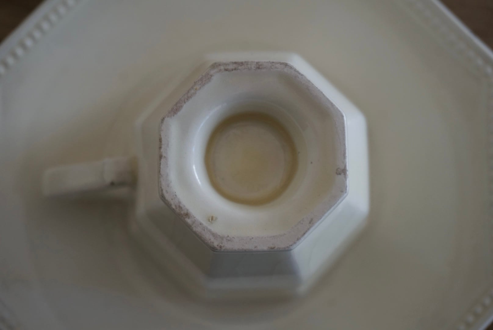 パリ近郊 Creil et Montereau窯より、オクトゴナルのカップ&ソーサーです。手にする度に光が当たった時の陰影がとても美しく、優雅で気品ある曲線美がとても計算されたシルエットだと感じます。デミタスサイズで少しずついただくお茶やコーヒーも、ゆっくりと時が流れて心落ち着くひと時となり、良いですよね。
