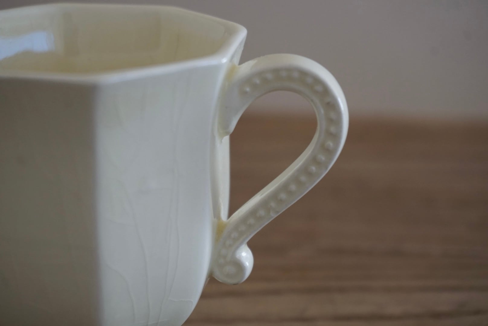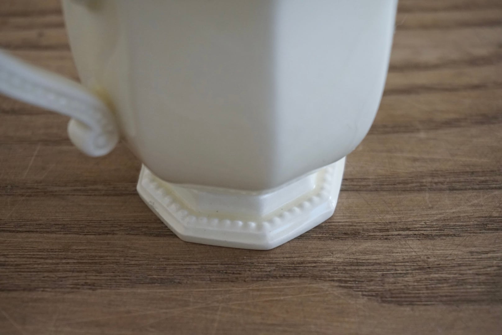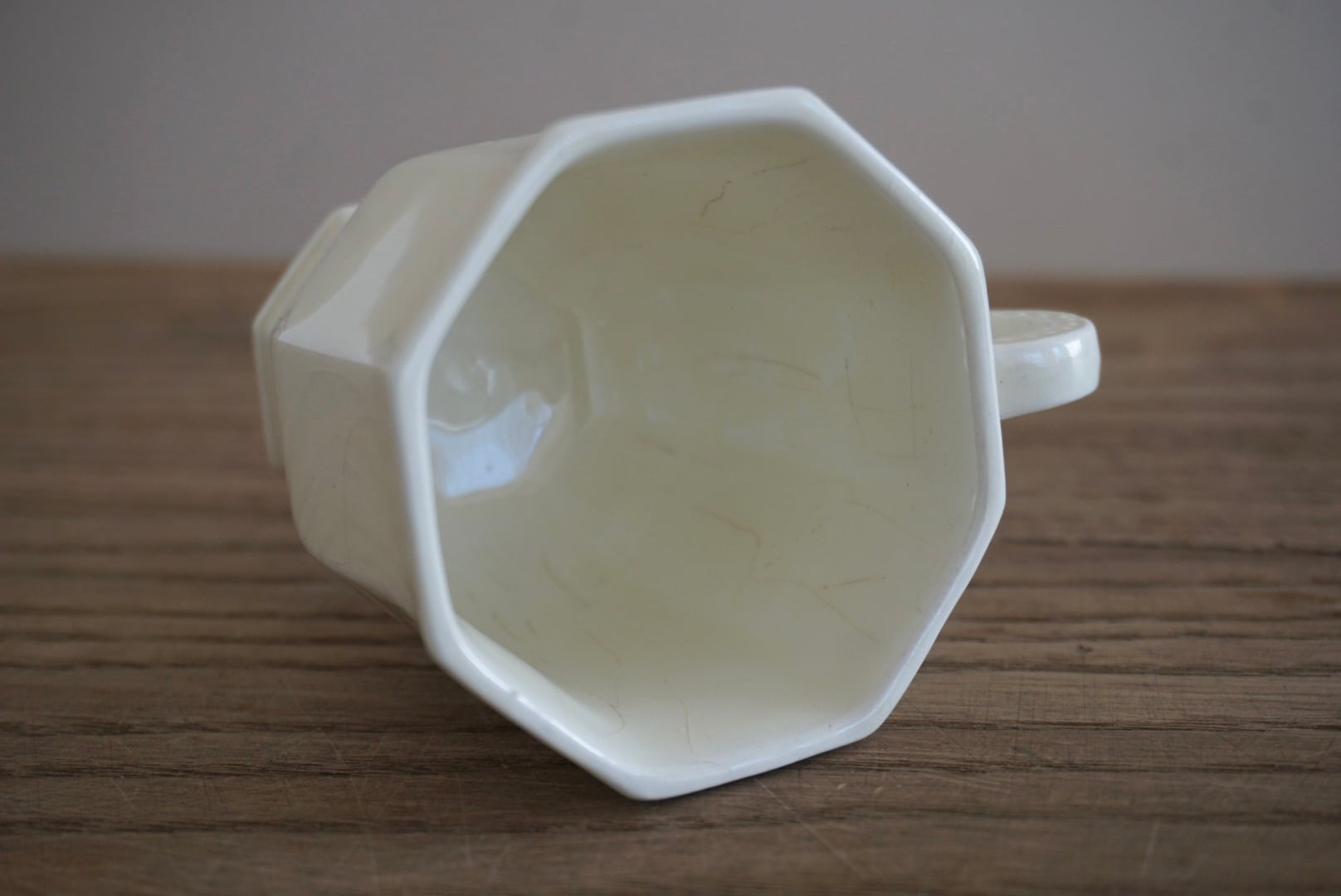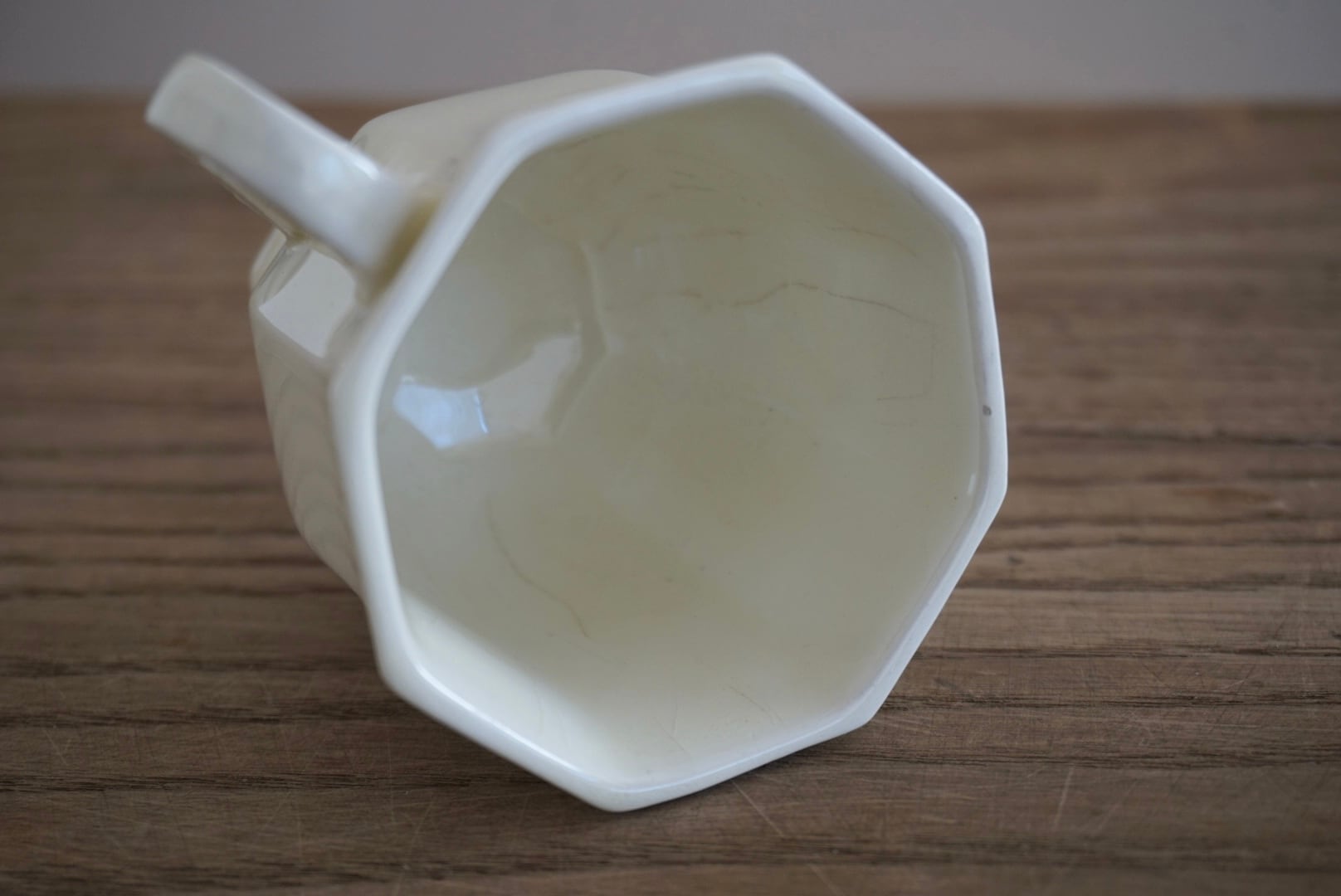 パリ近郊 Creil et Montereau窯より、オクトゴナルのカップ&ソーサーです。手にする度に光が当たった時の陰影がとても美しく、優雅で気品ある曲線美がとても計算されたシルエットだと感じます。デミタスサイズで少しずついただくお茶やコーヒーも、ゆっくりと時が流れて心落ち着くひと時となり、良いですよね。
