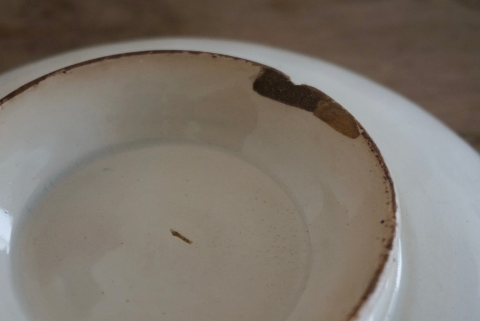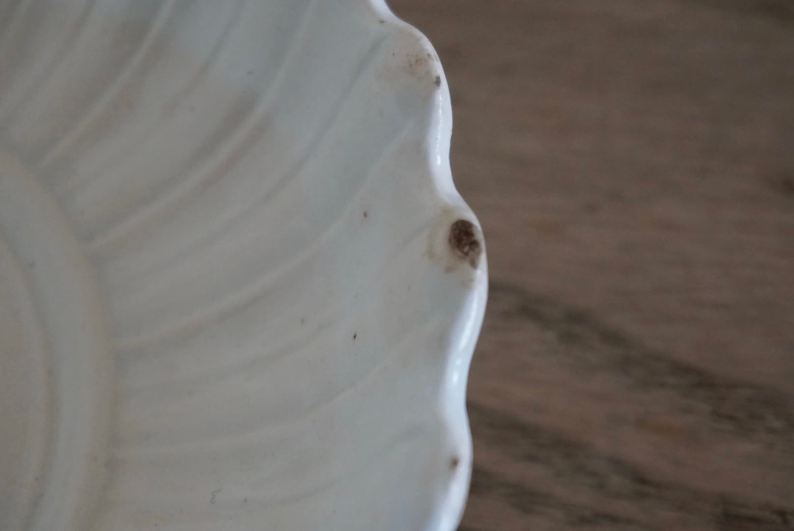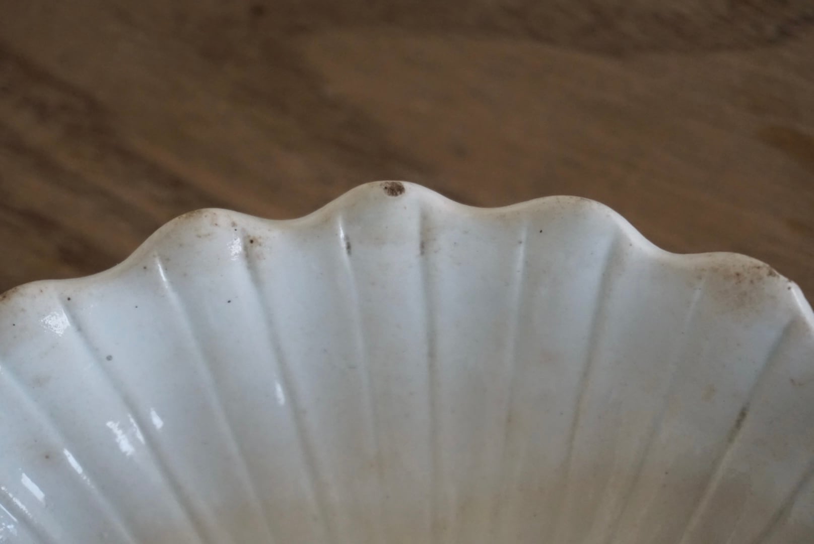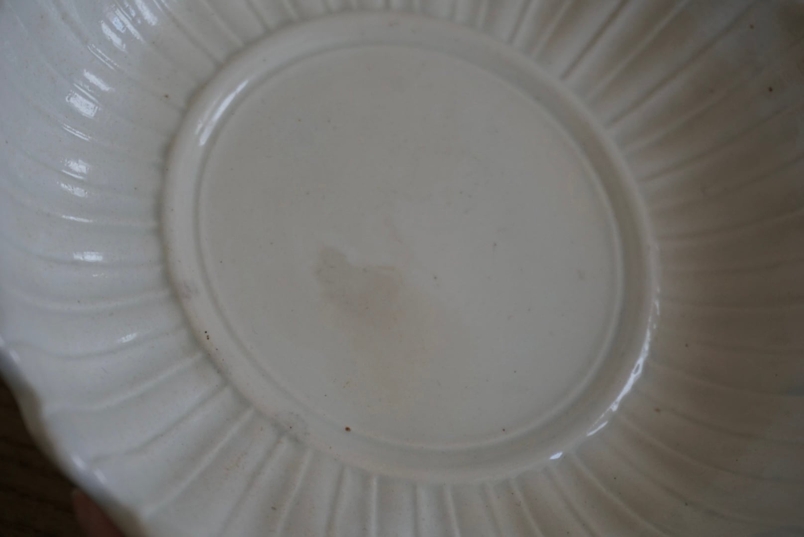 フランスで見つけた、とても良い雰囲気を纏った輪花鉢です。コンポティエのように少し高さがついていて、横から見た時に花が咲いているように見えるシルエットもとても美しいです。和骨董や和食との相性も抜群です。