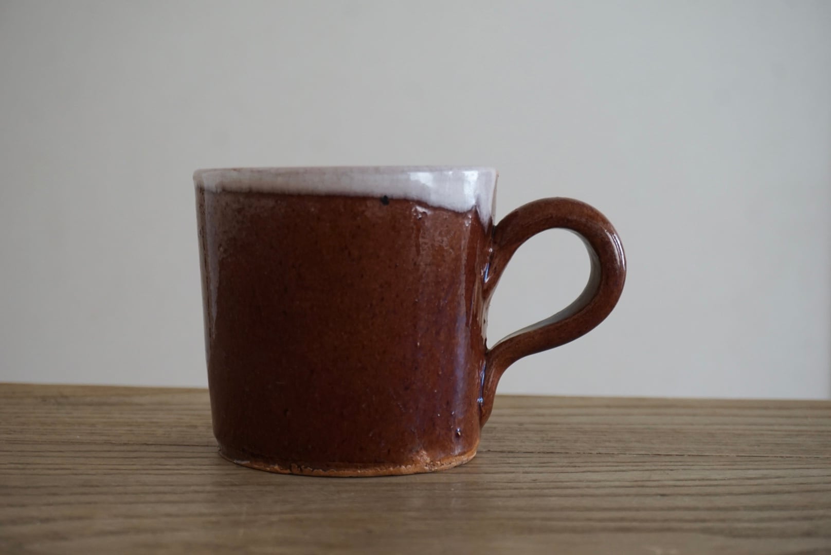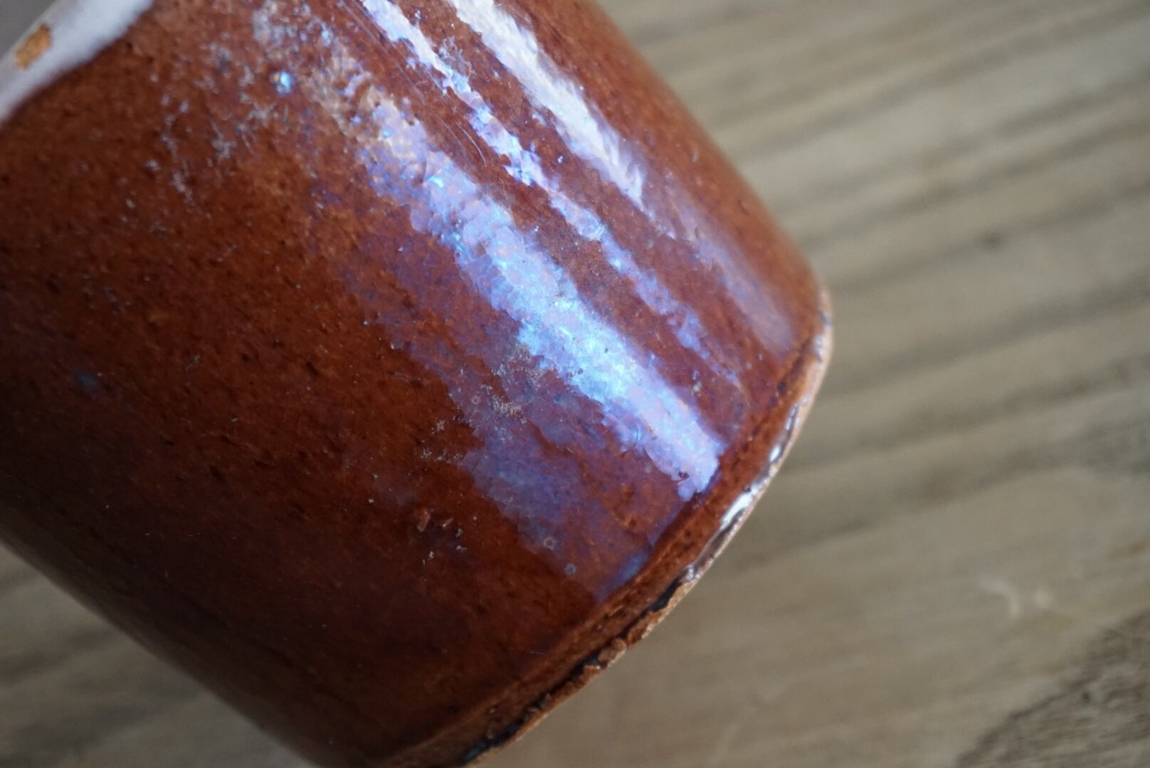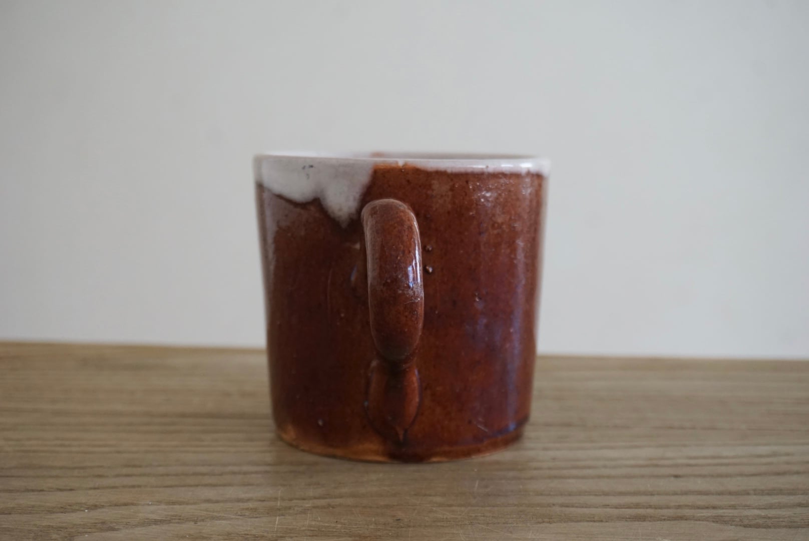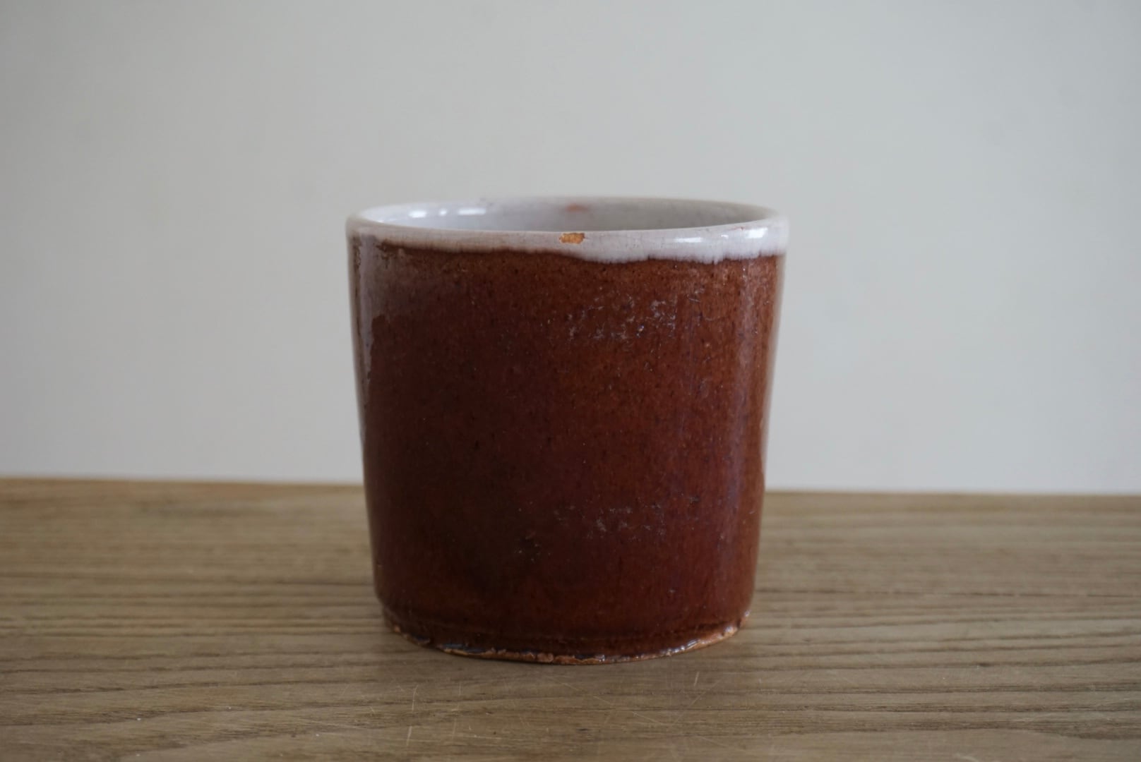 ノルマンディ地方発祥の民藝品、キュノワールの大きめマグカップです。スープがたっぷり飲めそうなサイズ感で、カトラリーやキッチンツールの収納にもぴったりです。キュノワールのマグに大きめのものが多いのは、計量カップとしての役割もあったからだと聞きました。農家のキッチンで活躍している姿を想像すると愛おしいですね。