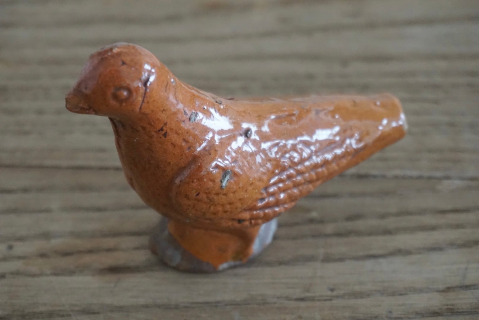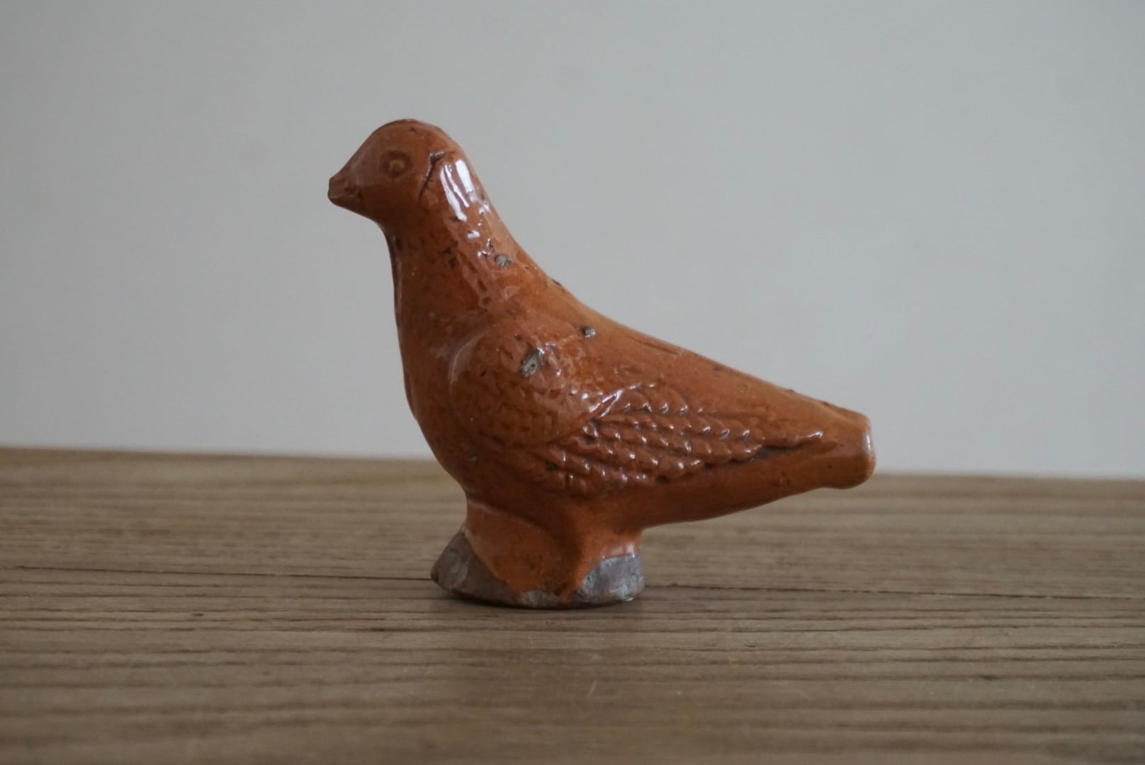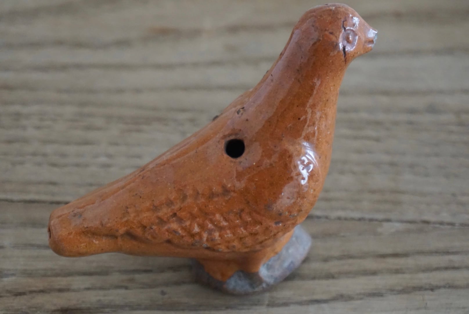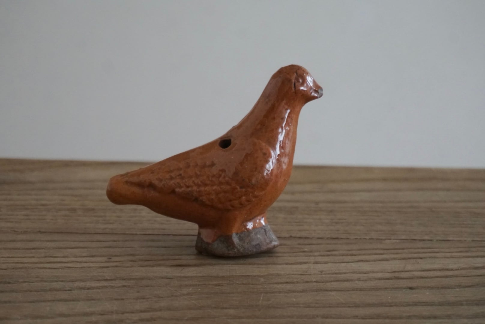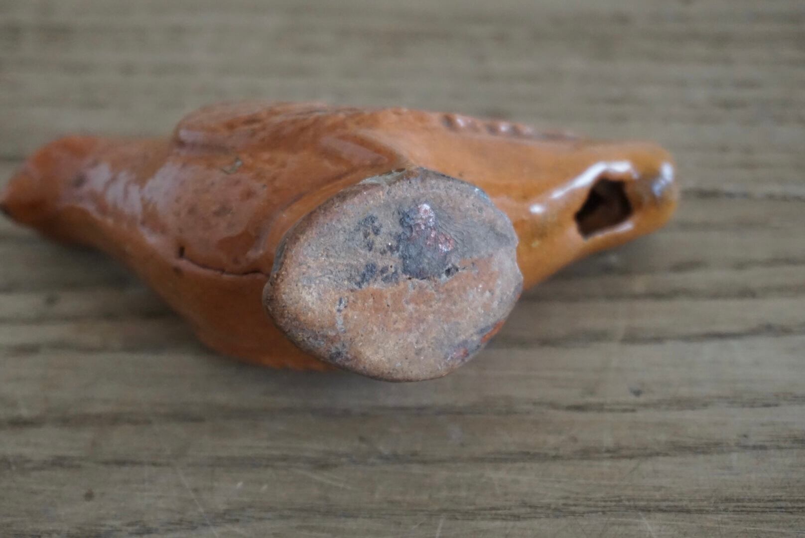Sifflet(シフレ)と呼ばれる、小鳥の形をした陶製の笛です。穴を塞ぐことで音階の調節も少しですができます。子供が遊ぶためのおもちゃだったのでしょうか。インテリアとして置いておくだけで心が暖かくなり、頬が緩みます。当時の人々の暮らしが垣間見える一品です。