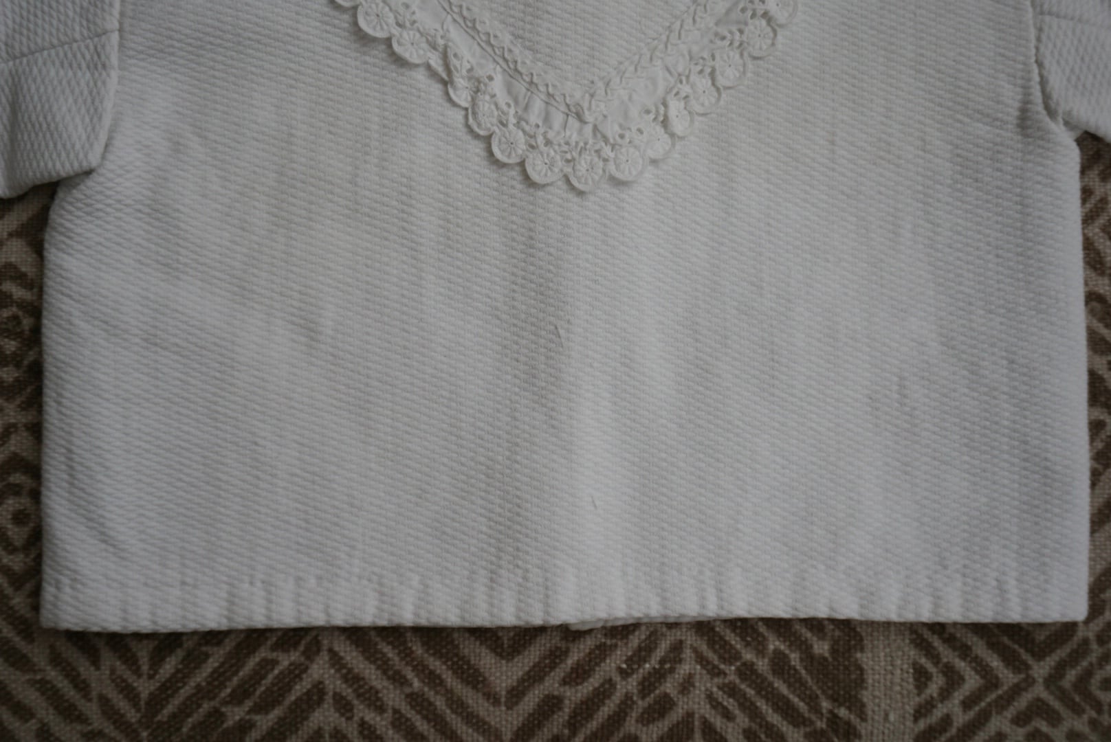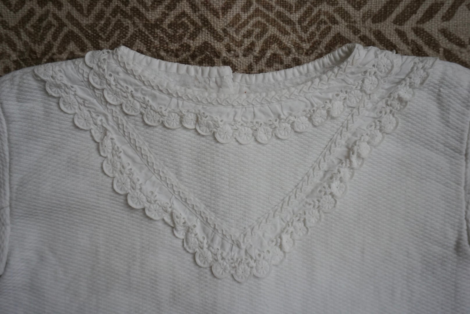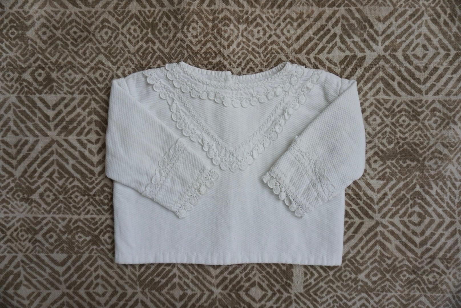 赤ちゃん用の小さなブラウスです。冬用なので生地が厚手で裏地が起毛しています。南フランスのモンペリエのお屋敷から出てきたそうで、その家の家主は医者だったそうです。ひとつひとつ丁寧に施された刺繍や上質な生地、繊細なレースから、子供たちはとても愛されていたことが伝わってきます。保管状態も良く、ぬいぐるみのお洋服に、撮影小物やディスプレイにもご使用いただけます。